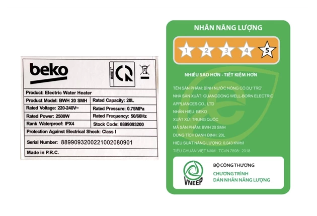 Đánh giá về Máy nước nóng gián tiếp Beko 20 lít BWH 20 SMH