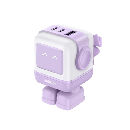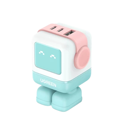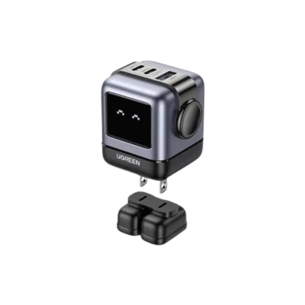 Củ sạc Ugreen sở hữu thiết kế hình robot dễ thương kết hợp màn hình LED hiển thị biểu cảm theo trạng thái sạc. Điều này giúp việc sạc trở nên trực quan và thú vị hơn, đồng thời tạo điểm nhấn độc đáo trên bàn làm việc hoặc không gian cá nhân.