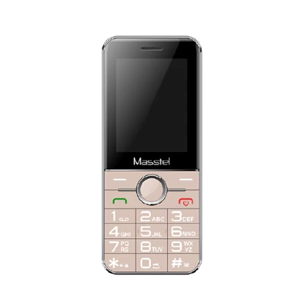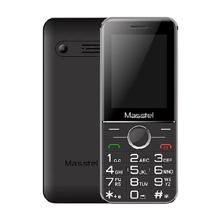 Mặt trước của chiếc máy này là màn hình LCD có kích thước 2,4 inch. Với màn hình màu, người dùng có thể dễ dàng nhìn thấy hình ảnh và chữ số hiển thị. Ở phía dưới là logo Masstel hàng phím điều hướng, phím trang chính và phím gọi, kết hợp với bàn phím quay số T9. Bộ đều được in ký hiệu kích thước lớn, giúp người cao tuổi dễ dàng nhìn thấy chữ số để gọi điện thoại.