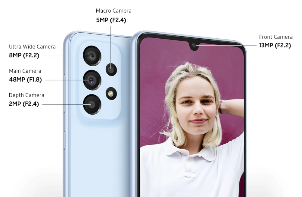 Samsung Galaxy A33 5G được trang bị hệ thống camera hiện đại bao gồm: