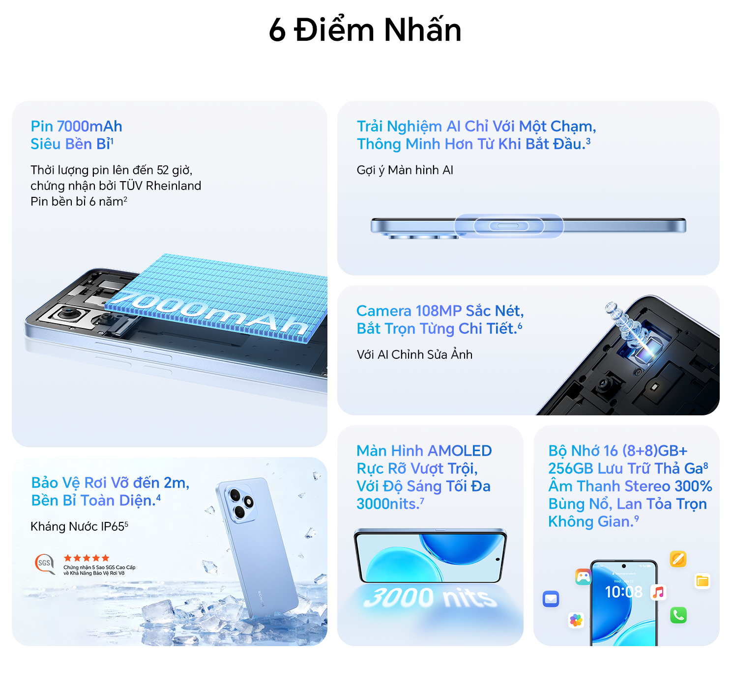 | Pin & sạc | 7000 mAh (Li-Po), sạc nhanh 45W, HONOR SuperCharge |