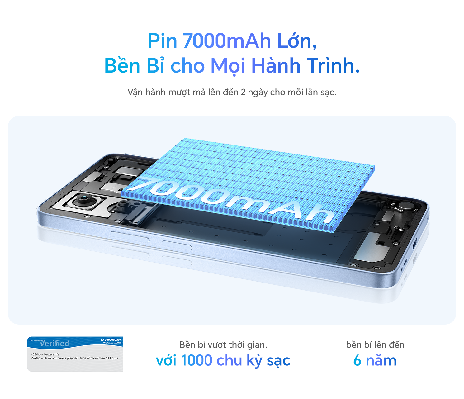 Một trong những điểm đáng chú ý khác trên Honor X8d là viên pin dung lượng lớn 7000mAh. Với mức dung lượng này, thiết bị được thiết kế để đáp ứng tốt nhu cầu sử dụng trong thời gian dài, phù hợp với người dùng thường xuyên làm việc, giải trí hoặc di chuyển nhiều trong ngày.
