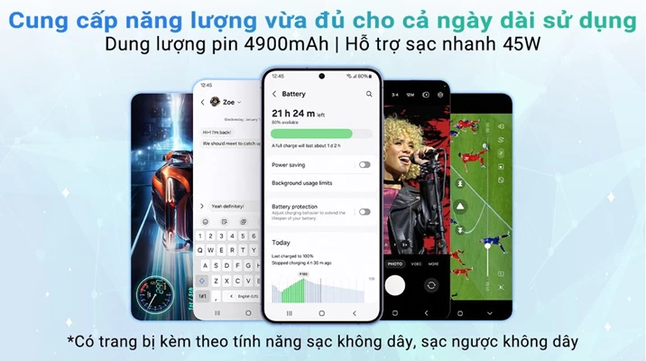 Đặc biệt, tần số quét 120Hz của màn hình là một điểm cộng lớn, giúp mọi chuyển động trên màn hình trở nên mượt mà và không bị giật lag. Thêm vào đó, chế độ bảo vệ mắt trên S24 Plus cũng là một điểm đáng chú ý, giúp giảm thiểu mệt mỏi và tác động xấu đến mắt của người dùng, đặc biệt trong quá trình sử dụng lâu dài.