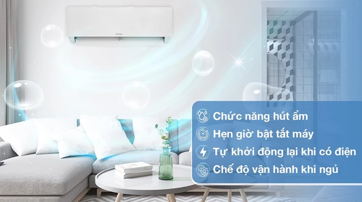 Chức năng hút ẩm giúp loại bỏ độ ẩm dư thừa trong không khí, tạo ra môi trường sống khô ráo và thoải mái. Tính năng này đặc biệt hữu ích trong những ngày mưa hoặc thời tiết ẩm ướt, khi độ ẩm cao có thể gây cảm giác khó chịu và làm phát triển nấm mốc, vi khuẩn. Khả năng hút ẩm không chỉ bảo vệ sức khỏe của người dùng mà còn bảo vệ đồ nội thất và các thiết bị điện tử khỏi hư hại do ẩm mốc.