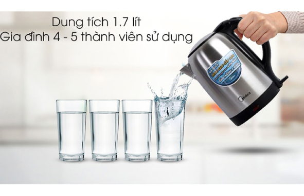 Bình đun siêu tốc MK-17SS với công suất gia nhiệt lớn 1800W đun nước đôi nhanh tức thì, tiết kiệm thời gian và dễ dàng sử dụng.