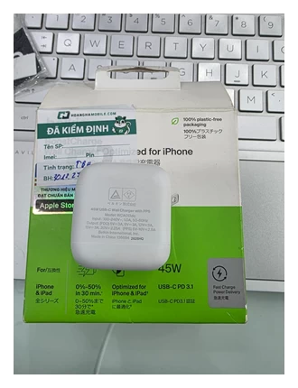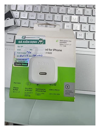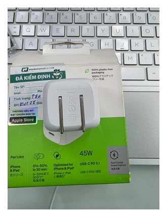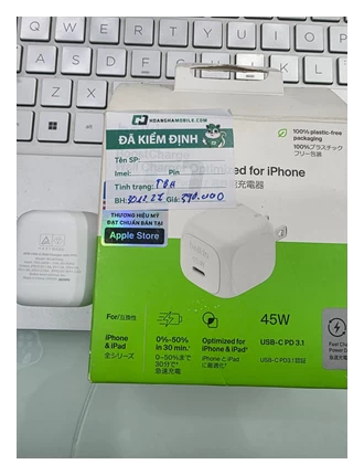 Công suất mạnh mẽ 45W với công nghệ USB-C Power Delivery (PD) 3.1 và PPS (Programmable Power Supply) giúp sạc nhanh chóng và tối ưu cho iPhone, iPad.
