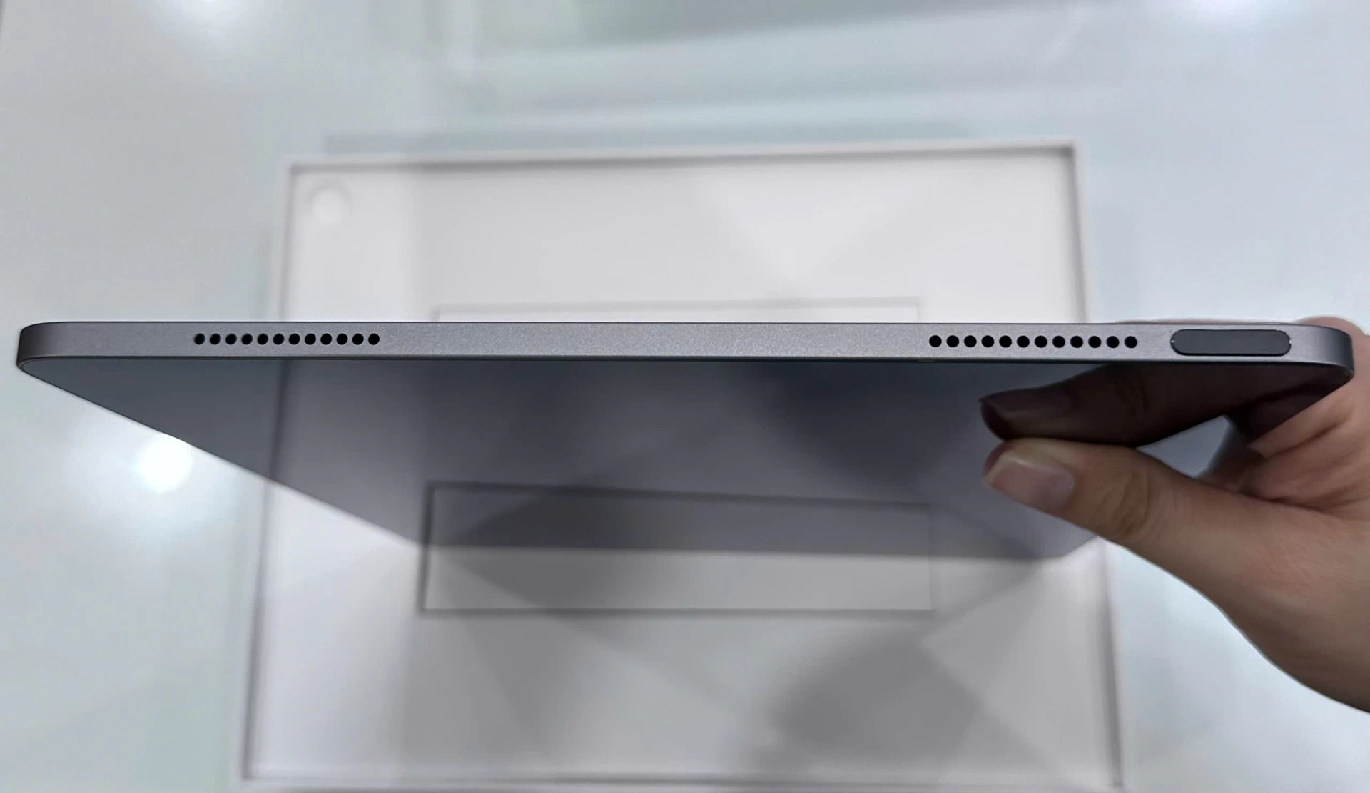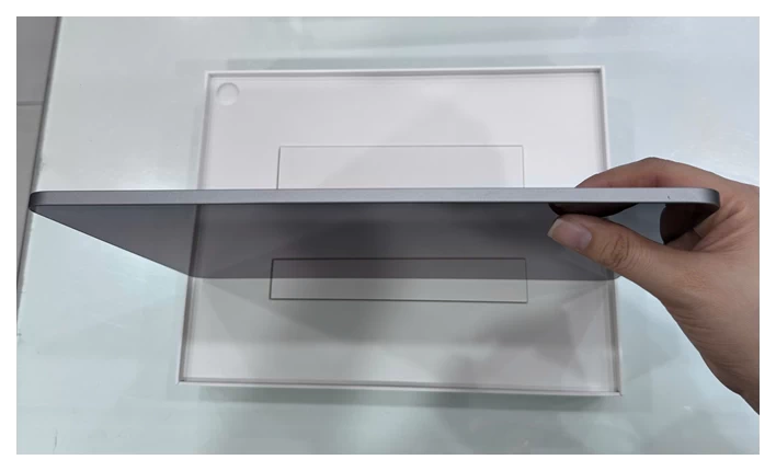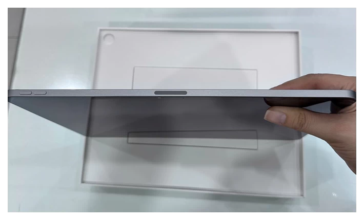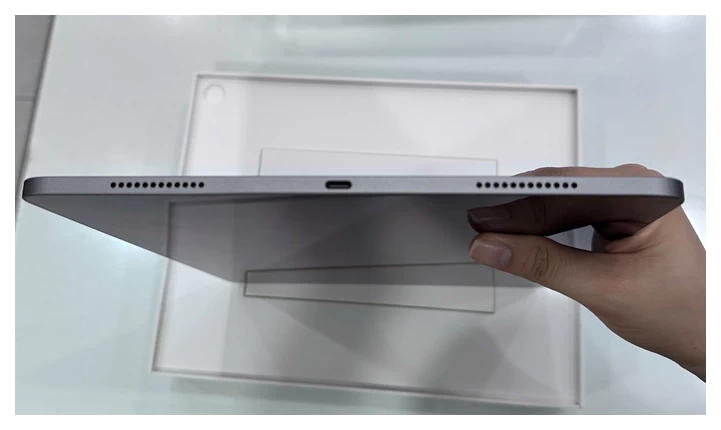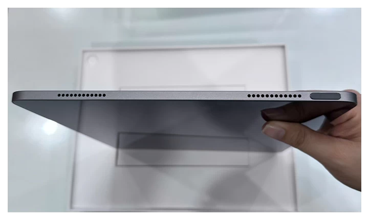 Ngoài sự nhẹ nhàng, bề mặt nhôm còn được xử lý chống trầy xước, giúp iPad giữ được vẻ ngoài mới lâu dài dù sử dụng hàng ngày. Các góc bo tròn mềm mại cùng viền màn hình mỏng tạo nên một tổng thể tinh tế, vừa đẹp mắt vừa tối ưu không gian hiển thị. Thiết kế này không chỉ mang đến cảm giác cao cấp khi cầm nắm mà còn giúp người dùng thao tác dễ dàng hơn, đặc biệt khi sử dụng trong thời gian dài.
