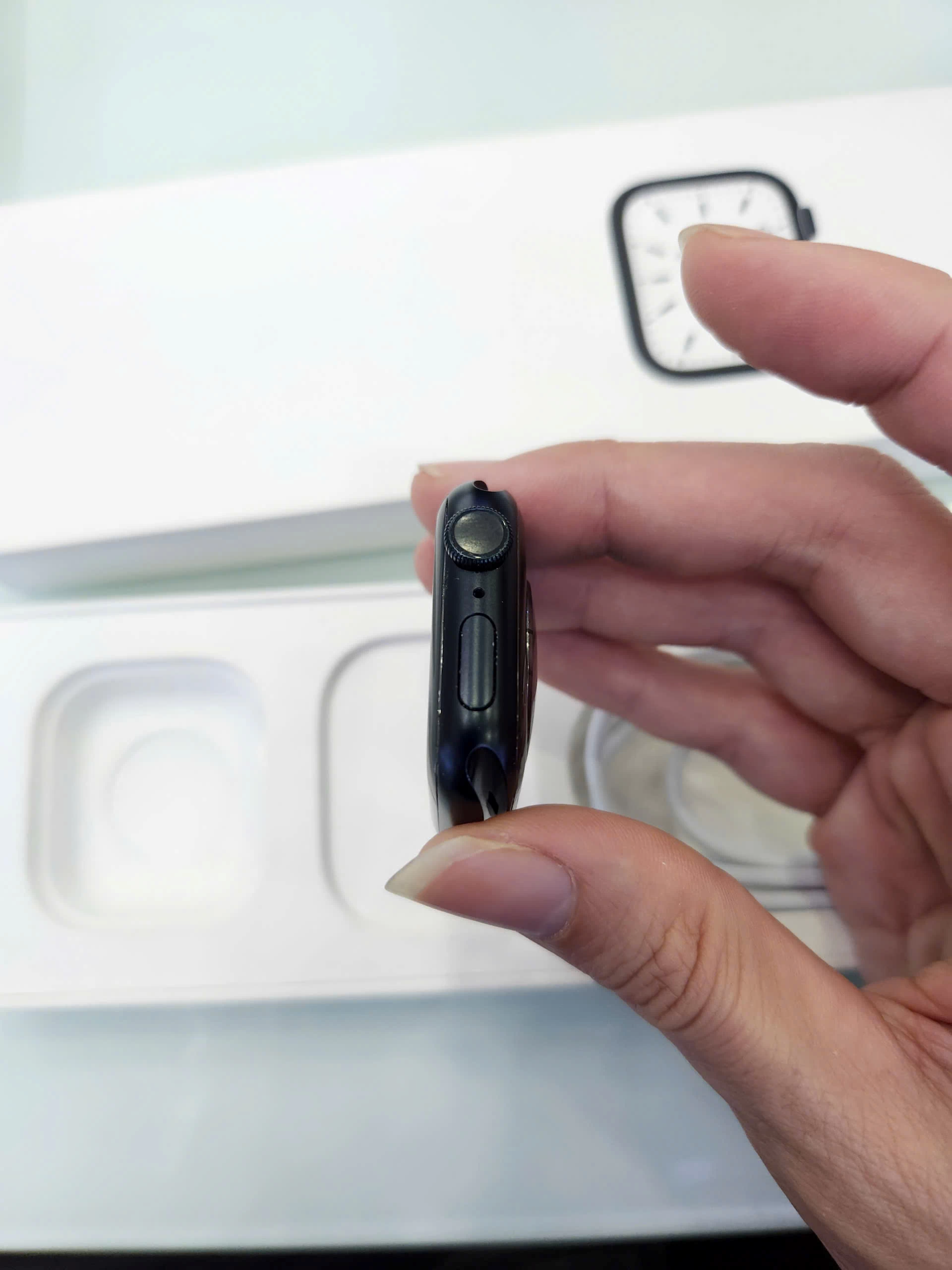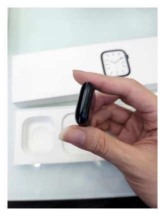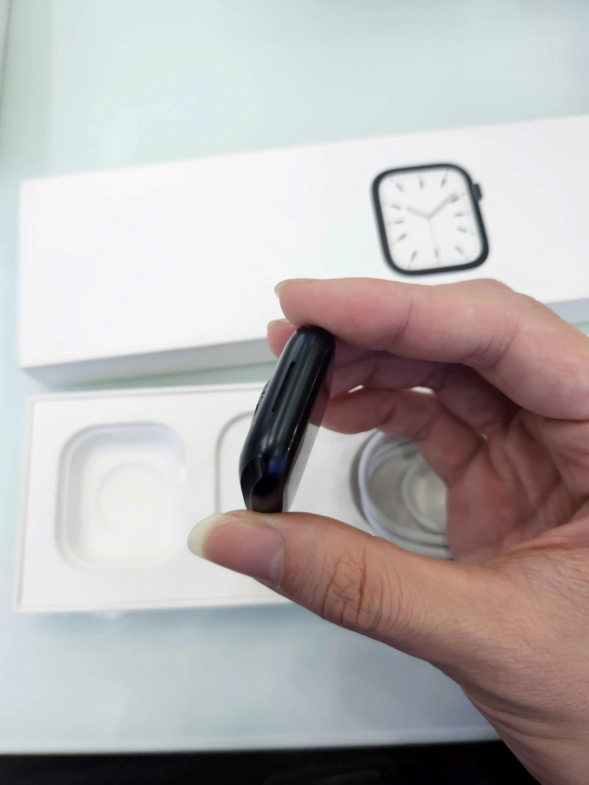 Ngoài ra, thiết kế màn hình vẫn là góc bo tròn quen thuộc nhưng thiết kế của Apple Watch Series 7 được tinh chỉnh với các góc mềm mại hơn, bo tròn hơn và màn hình có cạnh khúc xạ độc đáo giúp các ứng dụng và mặt đồng hồ toàn màn hình kết nối liền mạch với độ cong của vỏ. Dải loa 2 rãnh nay đã gộp thành một rãnh.