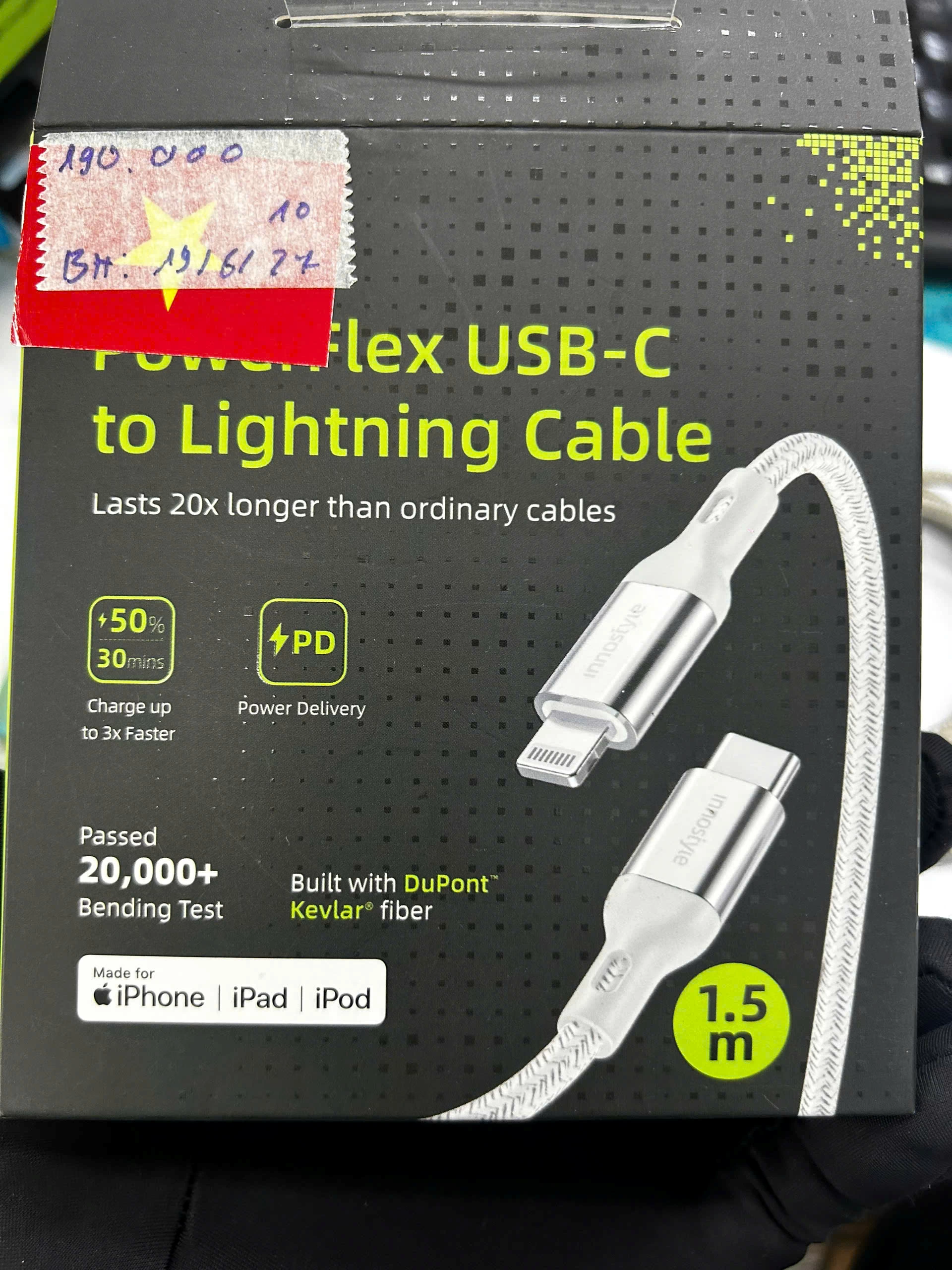 Dây sạc Innostyle PowerFlex USB-C to Lightning được làm từ chất liệu siêu bền, chống bẩn, 100% nguyên liệu Innostyle được nhập khẩu từ công ty hàng đầu của Đức Bayer Germany. Sản phẩm đi kèm với ba màu sắc là đen, bạc và xanh dương, đạt chứng chỉ MFI Chipset C94 do Apple cấp phép và chứng nhận an toàn và chống cháy nổ đến từ FCC.
