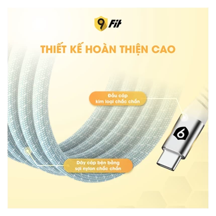 Chất lượng luôn là yếu tố hàng đầu mà 9Fit hướng đến. Cáp từ tính tự cuộn 9FIT USB-C to USB-C là minh chứng rõ ràng cho điều đó. Đầu cáp được làm từ chất liệu kim loại, tạo cảm giác chắc chắn và sang trọng. Dây cáp được bện từ sợi nylon cao cấp, không chỉ bền bỉ mà còn linh hoạt, chống rối hiệu quả. Nhờ đó, bạn có thể thoải mái sử dụng cáp sạc trong thời gian dài mà không lo bị đứt gãy hay hư hỏng.