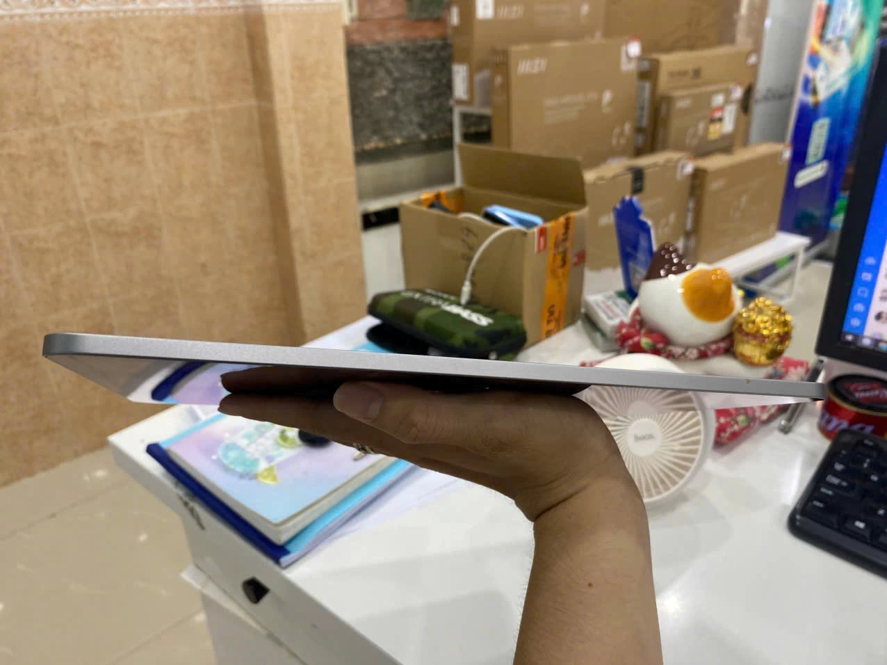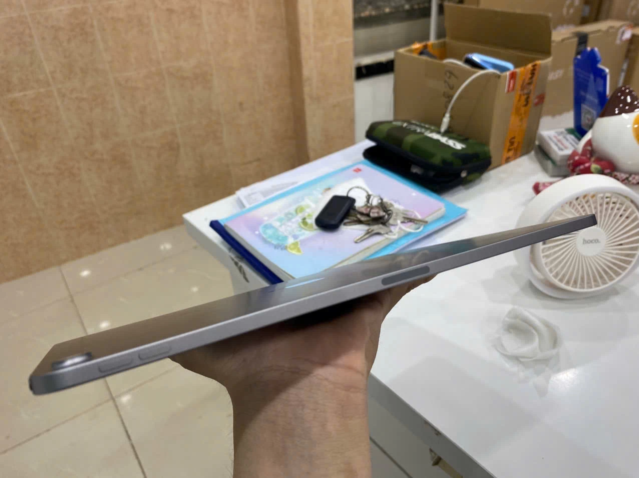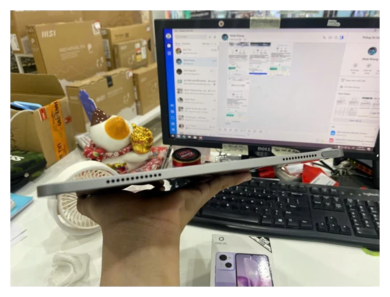 Ngoài sự nhẹ nhàng, bề mặt nhôm còn được xử lý chống trầy xước, giúp iPad giữ được vẻ ngoài mới lâu dài dù sử dụng hàng ngày. Các góc bo tròn mềm mại cùng viền màn hình mỏng tạo nên một tổng thể tinh tế, vừa đẹp mắt vừa tối ưu không gian hiển thị. Thiết kế này không chỉ mang đến cảm giác cao cấp khi cầm nắm mà còn giúp người dùng thao tác dễ dàng hơn, đặc biệt khi sử dụng trong thời gian dài.