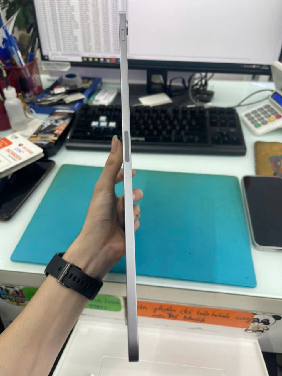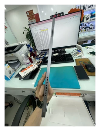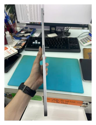 Ngoài sự nhẹ nhàng, bề mặt nhôm còn được xử lý chống trầy xước, giúp iPad giữ được vẻ ngoài mới lâu dài dù sử dụng hàng ngày. Các góc bo tròn mềm mại cùng viền màn hình mỏng tạo nên một tổng thể tinh tế, vừa đẹp mắt vừa tối ưu không gian hiển thị. Thiết kế này không chỉ mang đến cảm giác cao cấp khi cầm nắm mà còn giúp người dùng thao tác dễ dàng hơn, đặc biệt khi sử dụng trong thời gian dài.