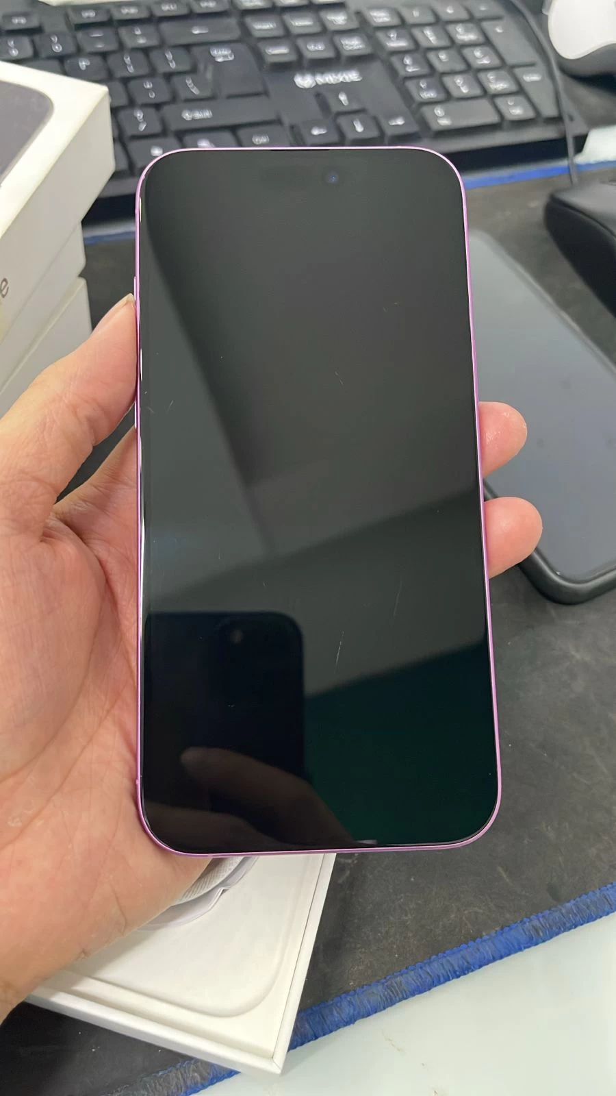 Thiết bị này có màn hình OLED 6,7 inch và tốc độ làm mới 60Hz bằng với kích cỡ của chiếc iPhone 15 tiêu chuẩn năm ngoái. Và tất nhiên nó cũng có cùng Dynamic Island ở phía mặt trước.