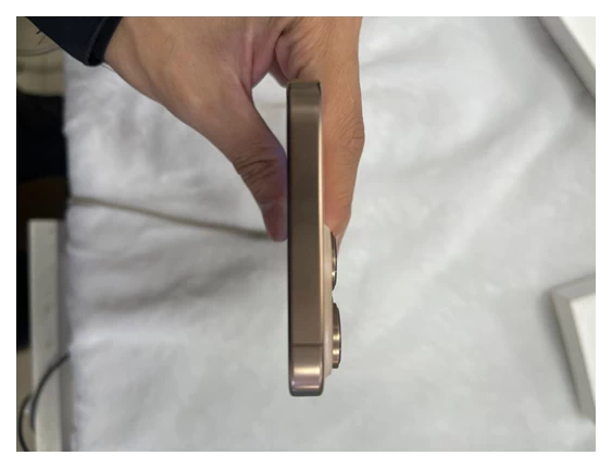 Một điểm mới ấn tượng của iPhone 16 Pro là Camera Control, được đặt bên dưới phím nguồn, hơi ấn vào vỏ máy, với phản hồi xúc giác bổ sung từ Taptic Engine của Apple. Đây là nút điện dung, vì vậy nút này sẽ không vô tình bị kích hoạt trong túi của bạn. Bạn có thể sử dụng nút này như một nút chụp và nhấp để chụp ảnh từ camera chính 48MP mà không có độ trễ màn trập.