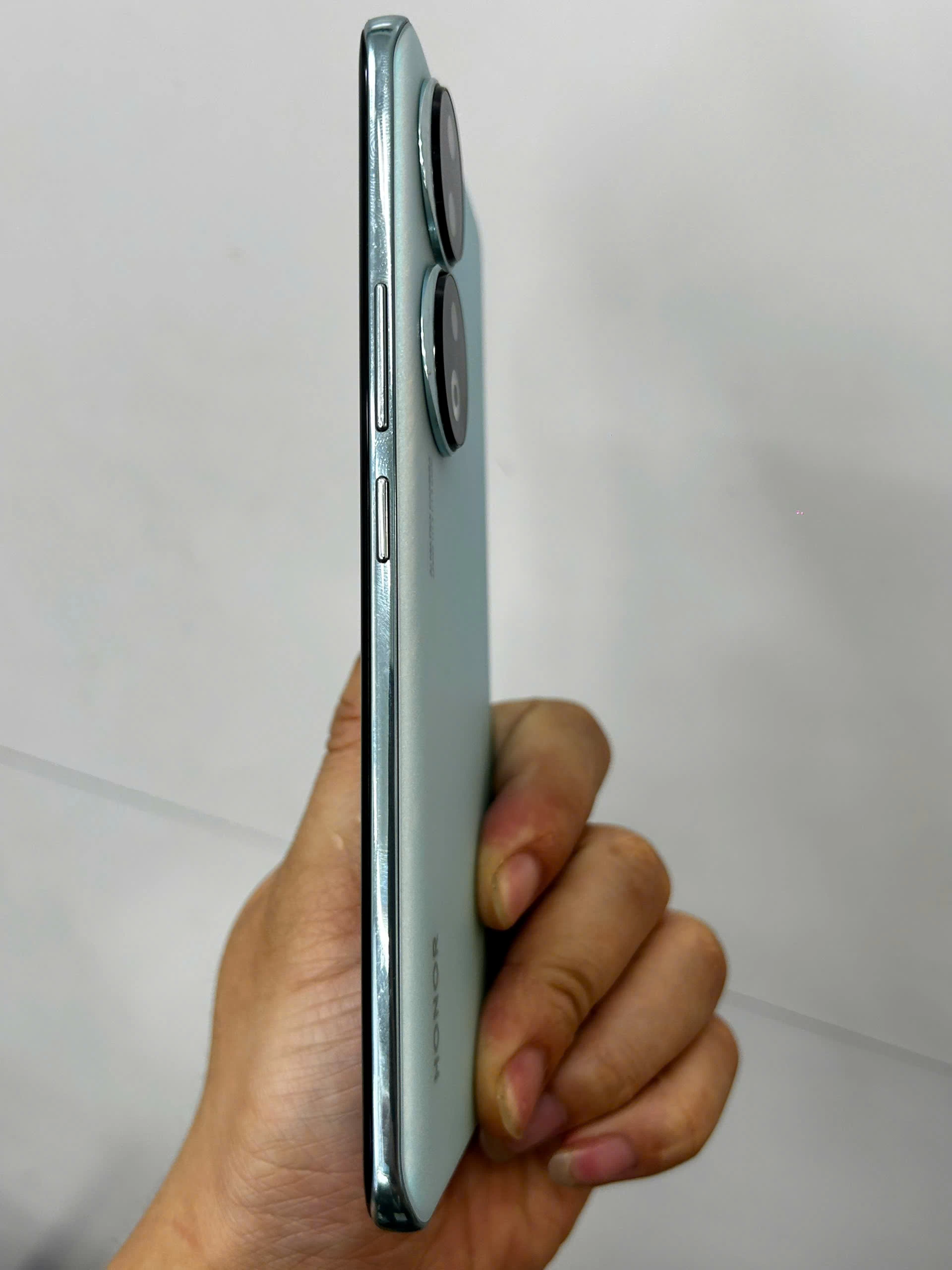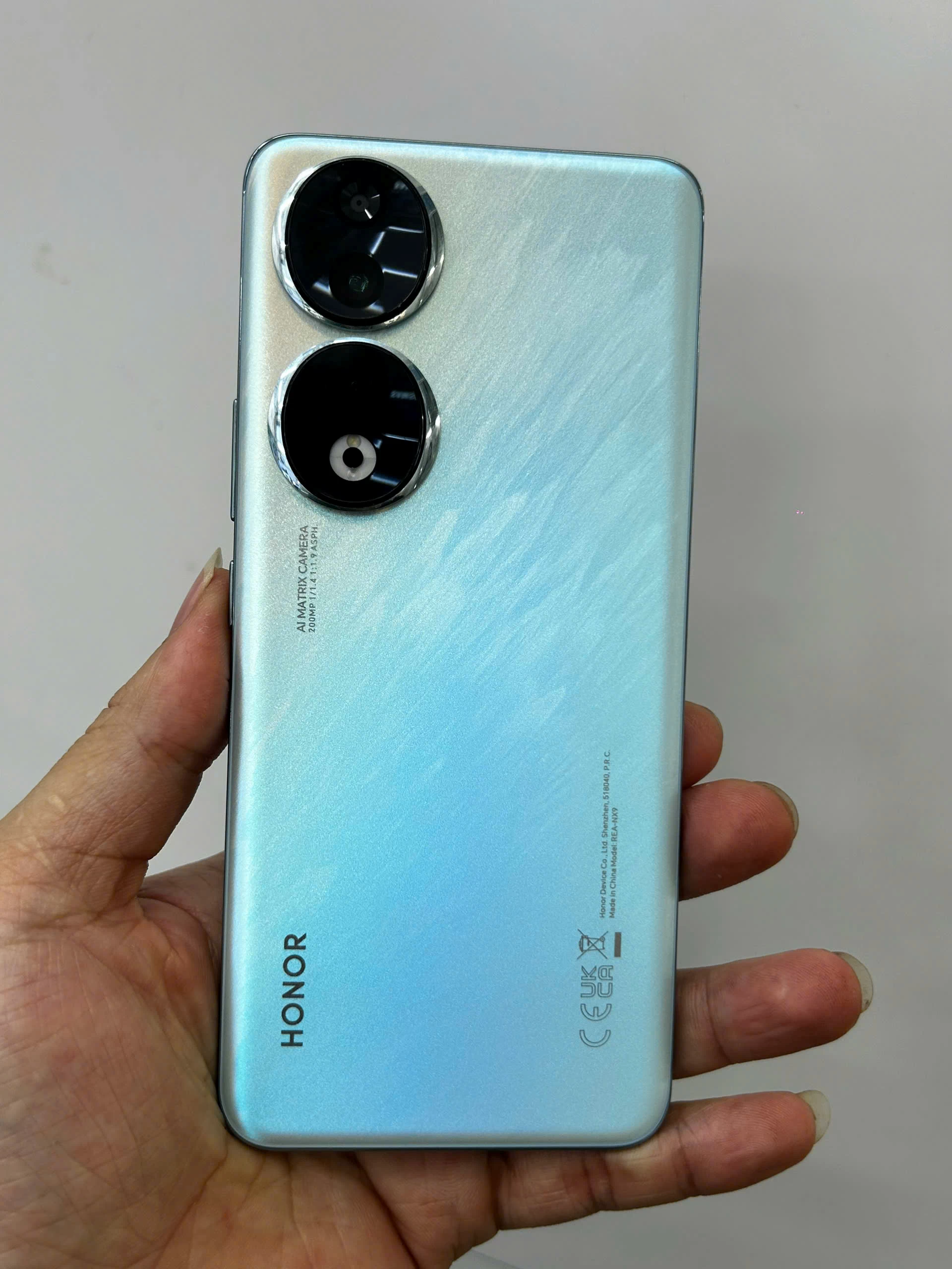 Nhìn tổng thể, HONOR 90 (12GB/256GB) có nhiều đường nét thiết kế trang nhã mang đặc trưng của hãng. Cụ thể là tương đồng với dòng N Series. Máy có kích thước lần lượt là 161.9mm x 74.1mm x 7.80mm và trọng lượng chỉ 183g. Kết hợp thêm kiểu dáng màn hình tràn viền bo cong mềm mại, tạo cảm giác cầm nắm trên tay rất thoải mái.
