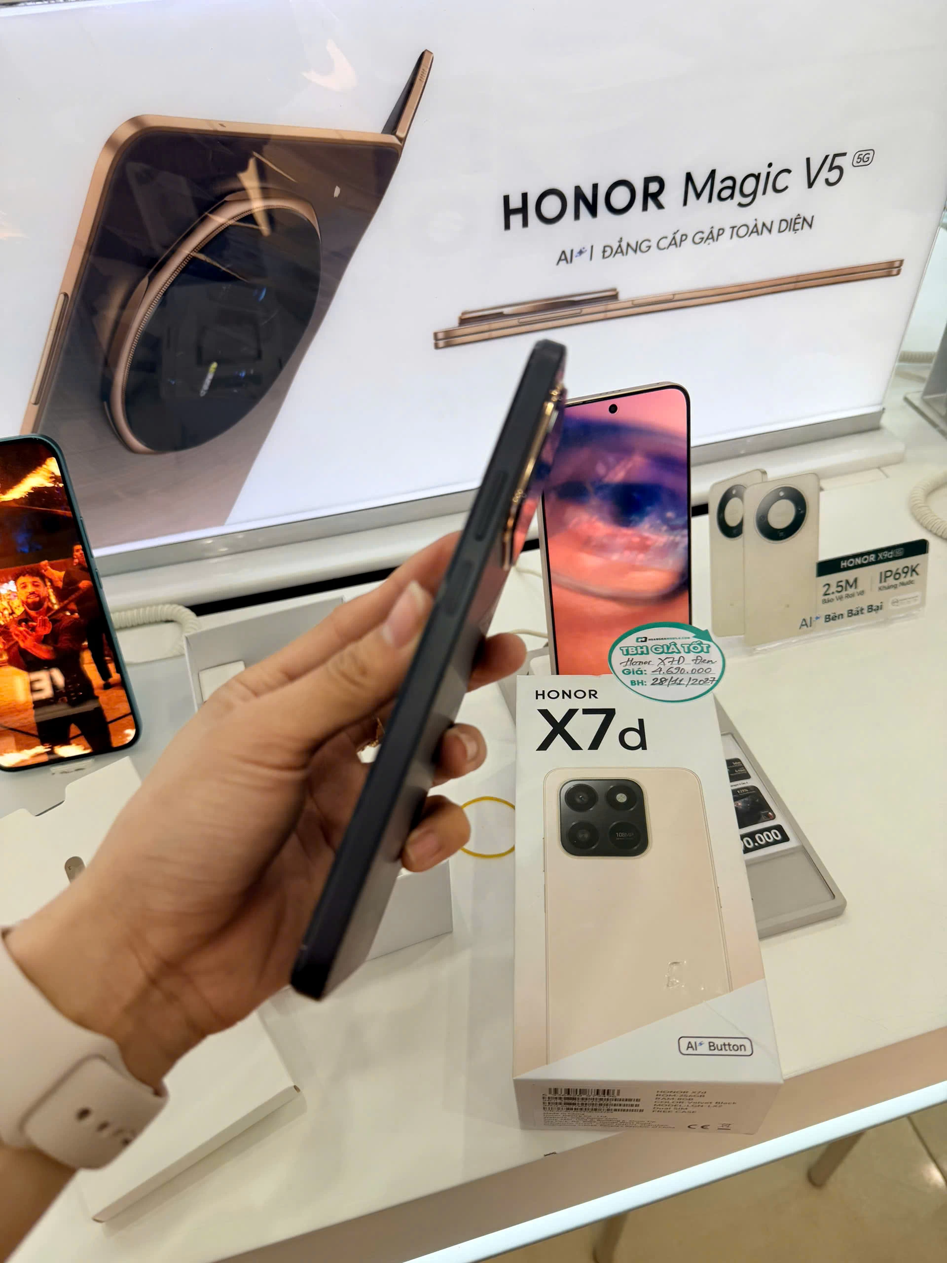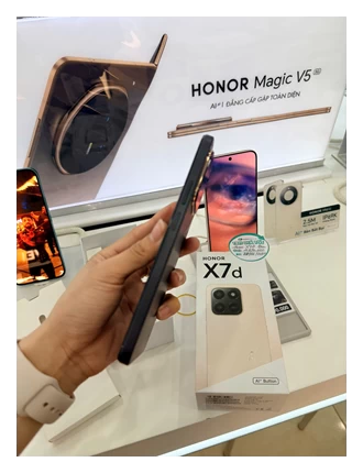 Khi mua HONOR X7d 4G, bạn sẽ được đội ngũ nhân viên tư vấn tận tình, giúp chọn lựa phiên bản phù hợp nhất với nhu cầu sử dụng của mình. Để biết thêm thông tin chi tiết và nhận báo giá tốt nhất, bạn có thể liên hệ hệ thống các cửa hàng hoặc tổng đài hỗ trợ 1900 2091 của Hoàng Hà Mobile!
