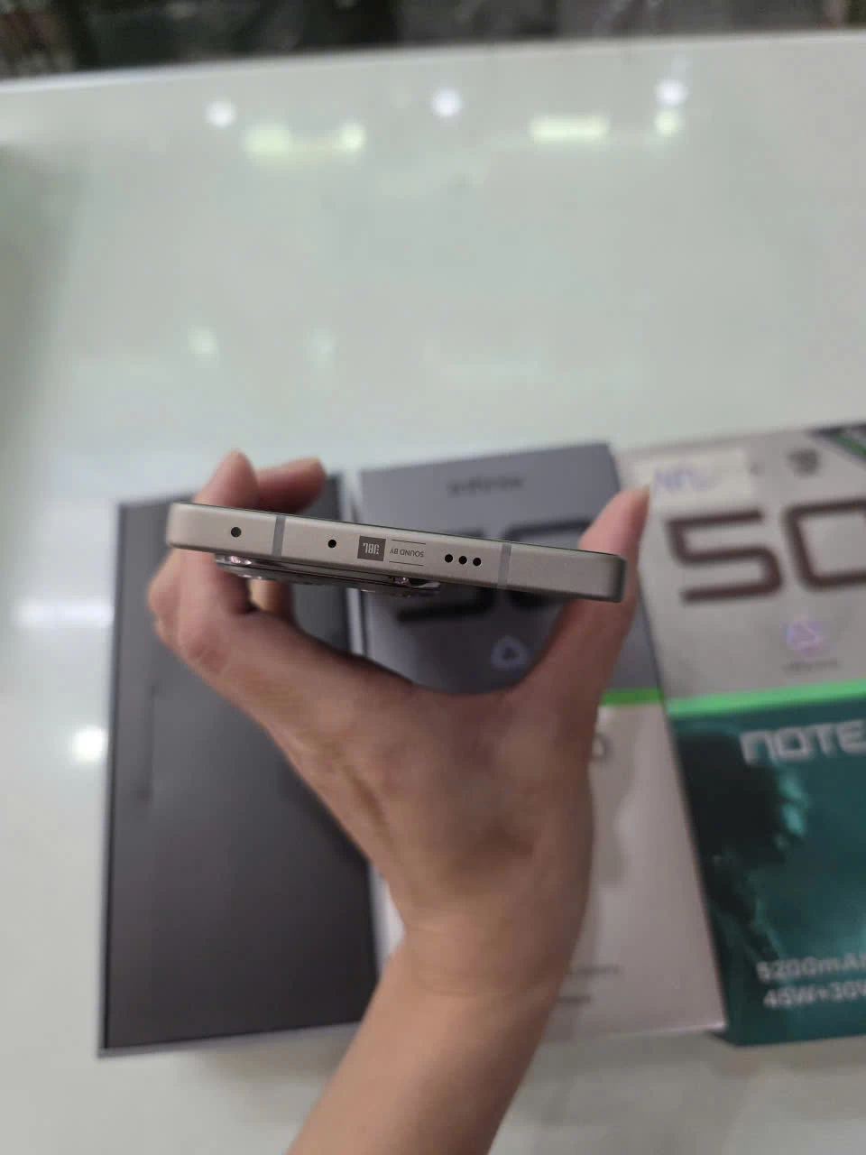 Ấn tượng đầu tiên khi cầm Infinix Note 50 trên tay chính là cảm giác chắc chắn và đầm tay nhờ khung viền kim loại có độ bền cao. Chất liệu này không chỉ mang lại vẻ ngoài cứng cáp, bền bỉ mà còn giúp tăng tính thẩm mỹ cho chiếc điện thoại. Đây thực sự là điểm cộng lớn cho điện thoại trong phân khúc tầm trung, khi mà nhiều đối thủ vẫn sử dụng khung nhựa hoặc thiết kế đơn giản.