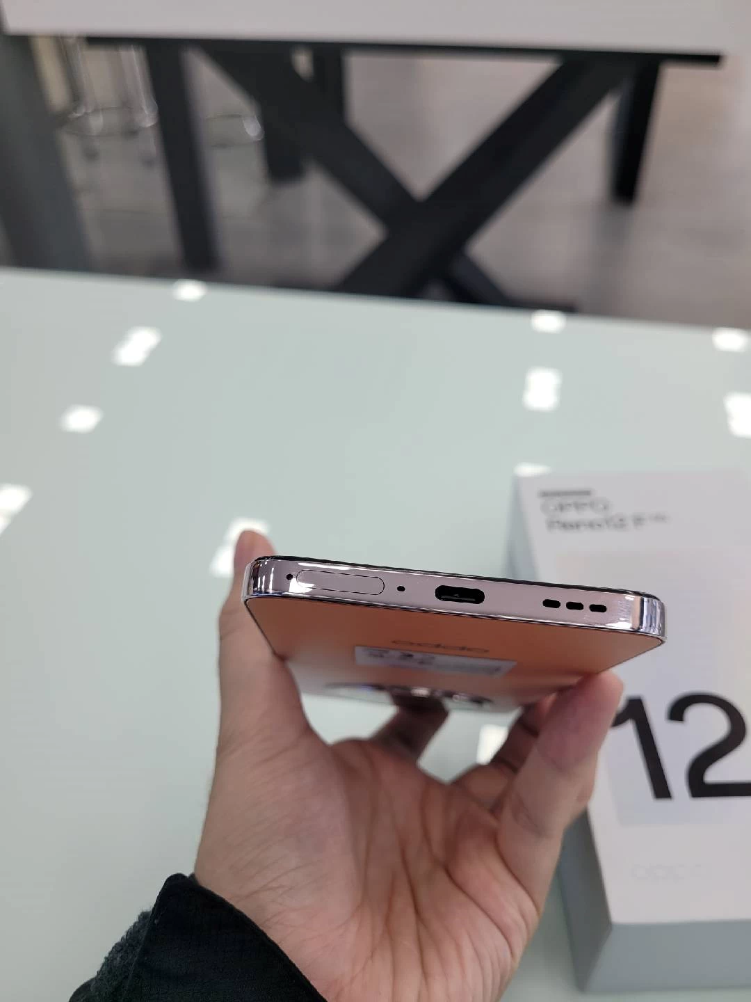 Không chỉ vậy, khung viền của điện thoại được làm bằng kim loại cứng cáp mang lại cảm giác cầm nắm chắc chắn. Các góc và cạnh của máy được bo tròn mềm mại, tạo cảm giác thoải mái khi cầm nắm và sử dụng trong thời gian dài mà không gây cảm giác khó chịu. Đặc biệt, logo Oppo được đặt ở vị trí tinh tế, tạo nên dấu ấn thương hiệu mà không làm mất đi sự tinh tế của thiết kế tổng thể.