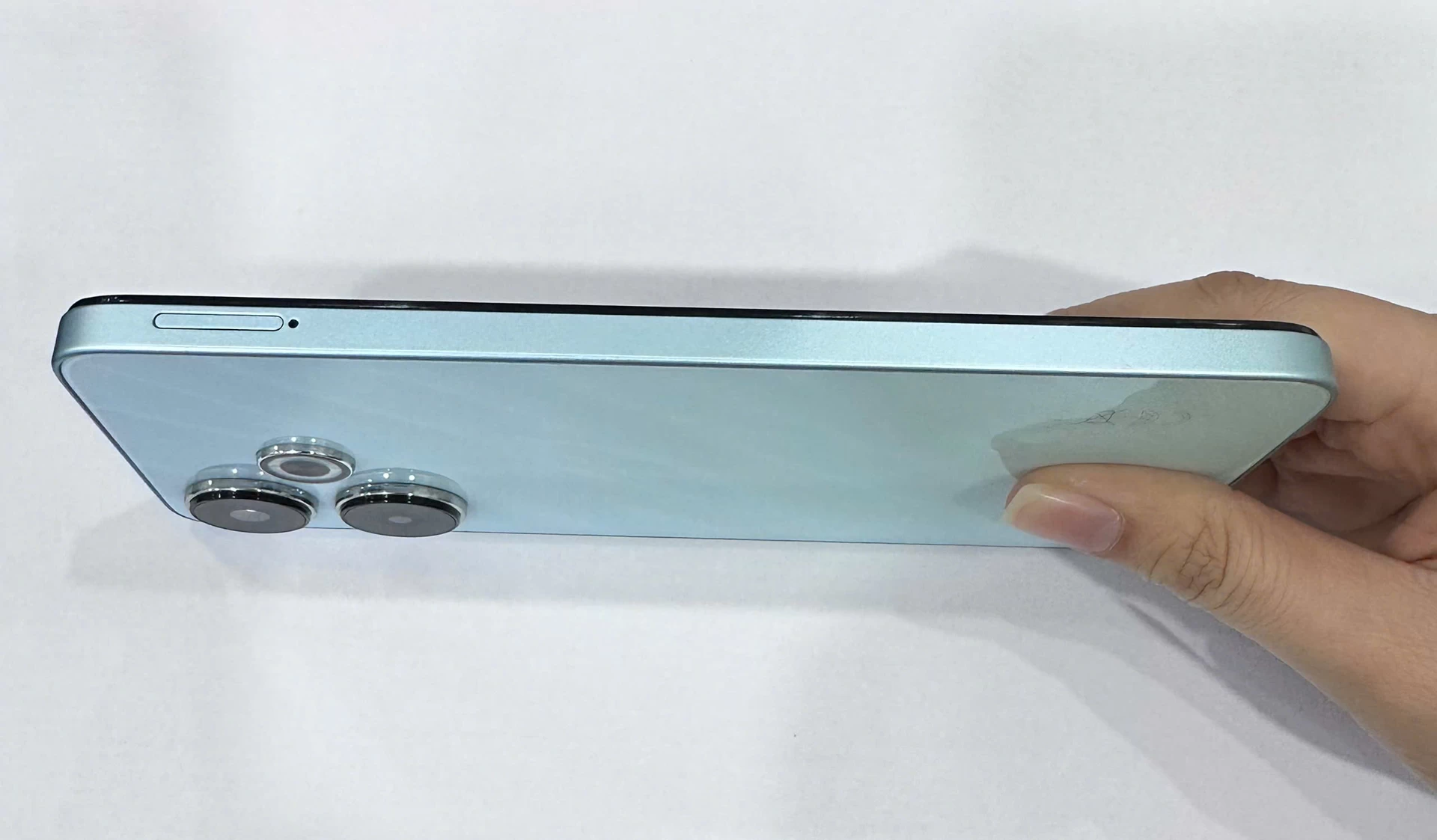 Máy có kích thước 168.6 x 76.3 x 8.3 mm và trọng lượng 205g được đánh là có thân hình khá “to con” với màn hình gần 6.8 inch, nên sẽ hơi lớn với những ai có bàn tay nhỏ. Tuy nhiên, cạnh viền được bo tròn nhẹ, giúp cảm giác cầm vẫn dễ chịu và chắc tay. Trọng lượng 205g tạo sự đầm tay, không quá nặng nhưng cũng không hẳn nhẹ - phù hợp với ai thích cảm giác “chắc chắn”.