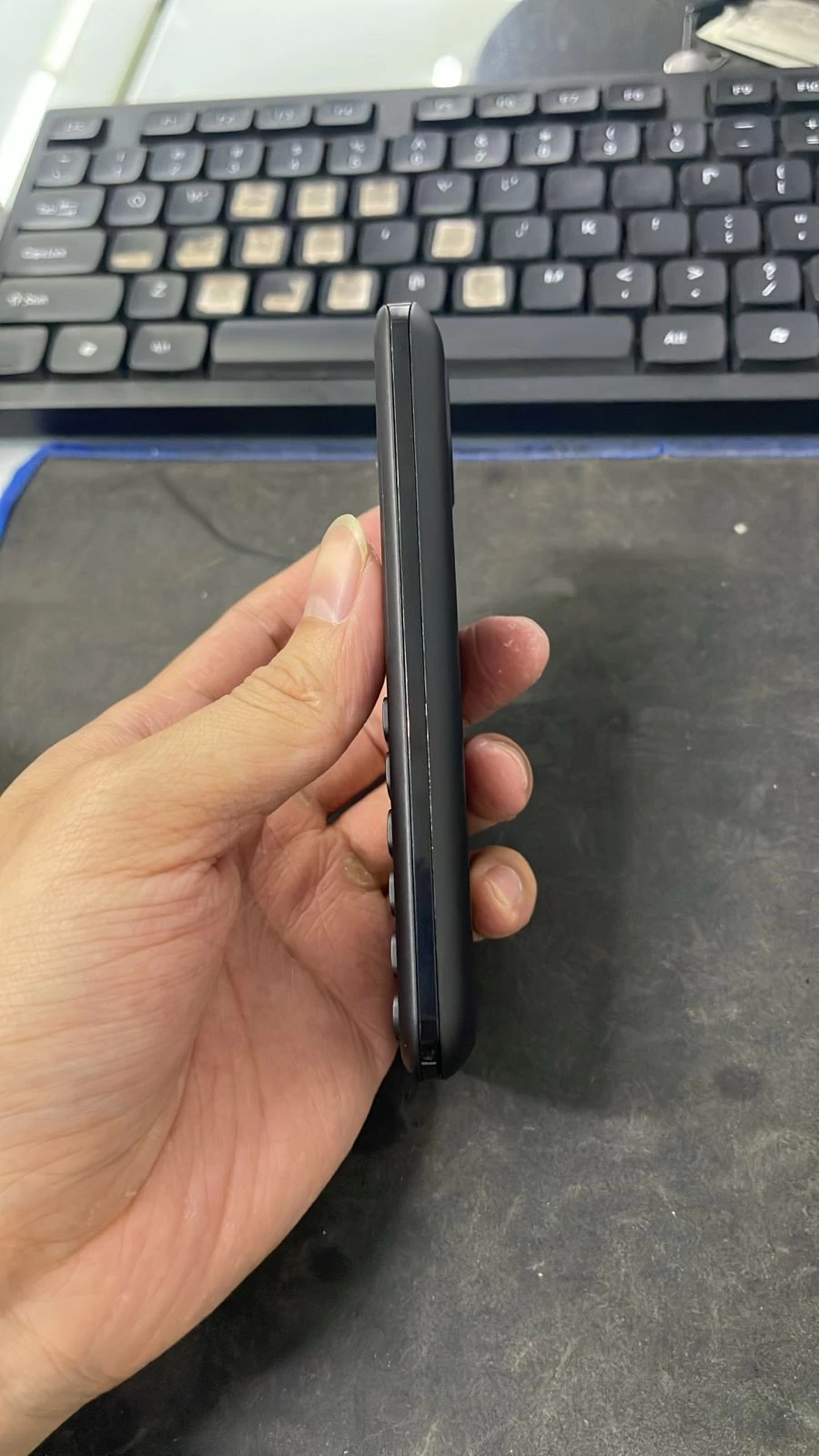 Phần mặt trước của máy nổi bật với khu vực bàn phím với thiết kế phím nổi, viền bo cong nhẹ và khoảng cách giữa các phím được thu hẹp lại, tạo bề mặt lớn hơn. Thiết kế này giúp thao tác bấm và giữ phím trở nên dễ dàng và thuận tiện hơn.  Ngoài ra, máy cũng được trang bị đa dạng các phiên bản màu sắc, bao gồm: Đen, Xanh Blue để người dùng có thể tùy ý lựa chọn theo sở thích và nhu cầu của mình.