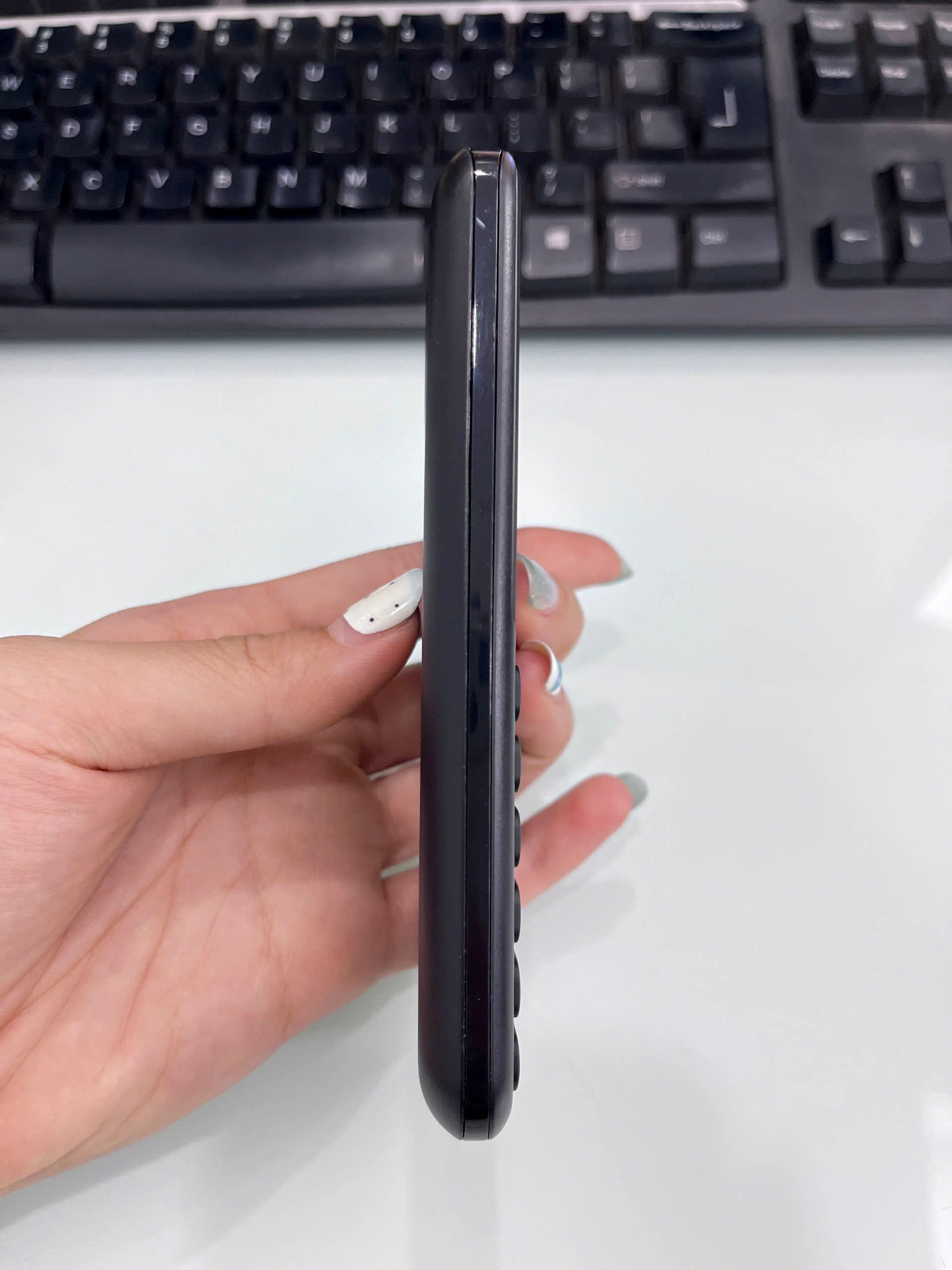 Phần mặt trước của máy nổi bật với khu vực bàn phím với thiết kế phím nổi, viền bo cong nhẹ và khoảng cách giữa các phím được thu hẹp lại, tạo bề mặt lớn hơn. Thiết kế này giúp thao tác bấm và giữ phím trở nên dễ dàng và thuận tiện hơn.  Ngoài ra, máy cũng được trang bị đa dạng các phiên bản màu sắc, bao gồm: Đen, Xanh Blue để người dùng có thể tùy ý lựa chọn theo sở thích và nhu cầu của mình.