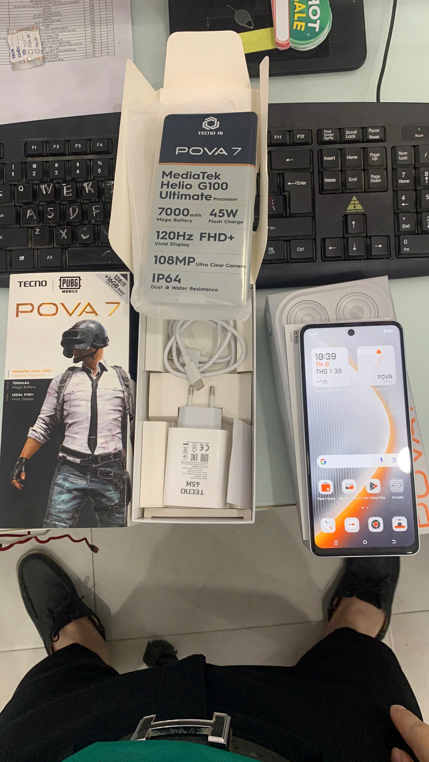 TECNO POVA 7 là mẫu smartphone nổi bật trong phân khúc tầm trung với cấu hình mạnh mẽ và thiết kế năng động. Máy được trang bị màn hình IPS LCD 6.78 inch Full HD+ cùng tần số quét 120Hz cho trải nghiệm hình ảnh mượt mà. Hiệu năng đến từ vi xử lý MediaTek Helio G100 Ultimate, kết hợp RAM 8GB (+ 8GB RAM ảo) cùng bộ nhớ trong 128GB, đáp ứng tốt nhu cầu đa nhiệm và chơi game. Hệ thống tản nhiệt Hyper Cooling System kết hợp với công nghệ AI Engine giúp kiểm soát nhiệt độ khi chơi game một cách tối ưu. Và cuối cùng, viên pin 7000mAh kết hợp với sạc siêu tốc 45W đảm bảo thời gian sử dụng bền bỉ cả ngày dài.