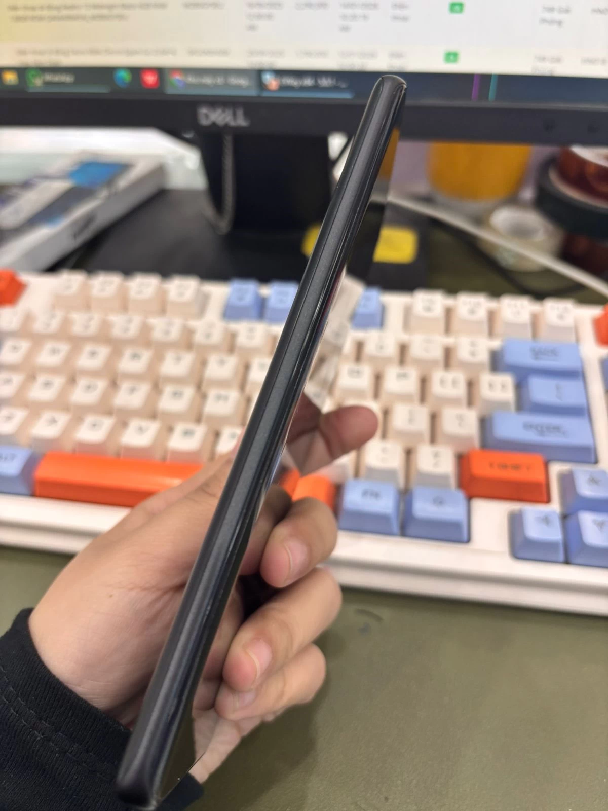 Thiết bị được trang bị tấm nền AMOLED kích thước 6,77 inch, độ phân giải Full HD+ giúp hình ảnh hiển thị sắc nét, màu sắc có chiều sâu và độ tương phản cao. Công nghệ AMOLED mang lại lợi thế rõ rệt khi sử dụng ngoài trời nhờ khả năng hiển thị màu đen sâu và tiết kiệm điện năng hơn so với LCD truyền thống. Tần số quét 120Hz giúp mọi thao tác vuốt chạm, cuộn trang hay chuyển cảnh trong game trở nên mượt mà.