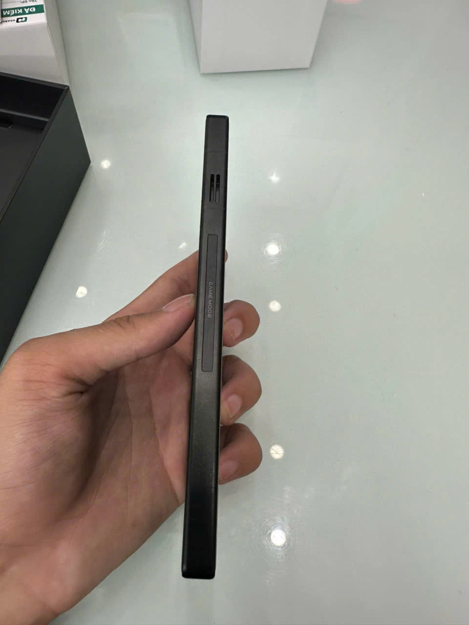 Với kích thước 163.8 x 76.5 x 8.9 mm và trọng lượng 230 g, máy mang lại cảm giác cầm nắm chắc tay, đậm chất “chiến binh”, nhưng vẫn đảm bảo sự cân bằng để chơi game lâu mà không quá mỏi.