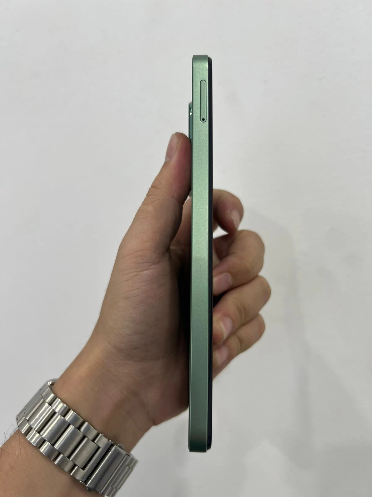 Các nút bấm vật lý được bố trí hợp lý, dễ dàng thao tác bằng một tay. Cạnh phải chứa nút nguồn tích hợp cảm biến vân tay một chạm, cho phép mở khóa nhanh chóng và tiện lợi. Cạnh trái là nơi đặt khay SIM và nút tăng giảm âm lượng. Tổng thể, thiết bị này sở hữu thiết kế đẹp mắt, phù hợp với giới trẻ năng động, yêu thích sự đơn giản nhưng vẫn toát lên vẻ hiện đại.