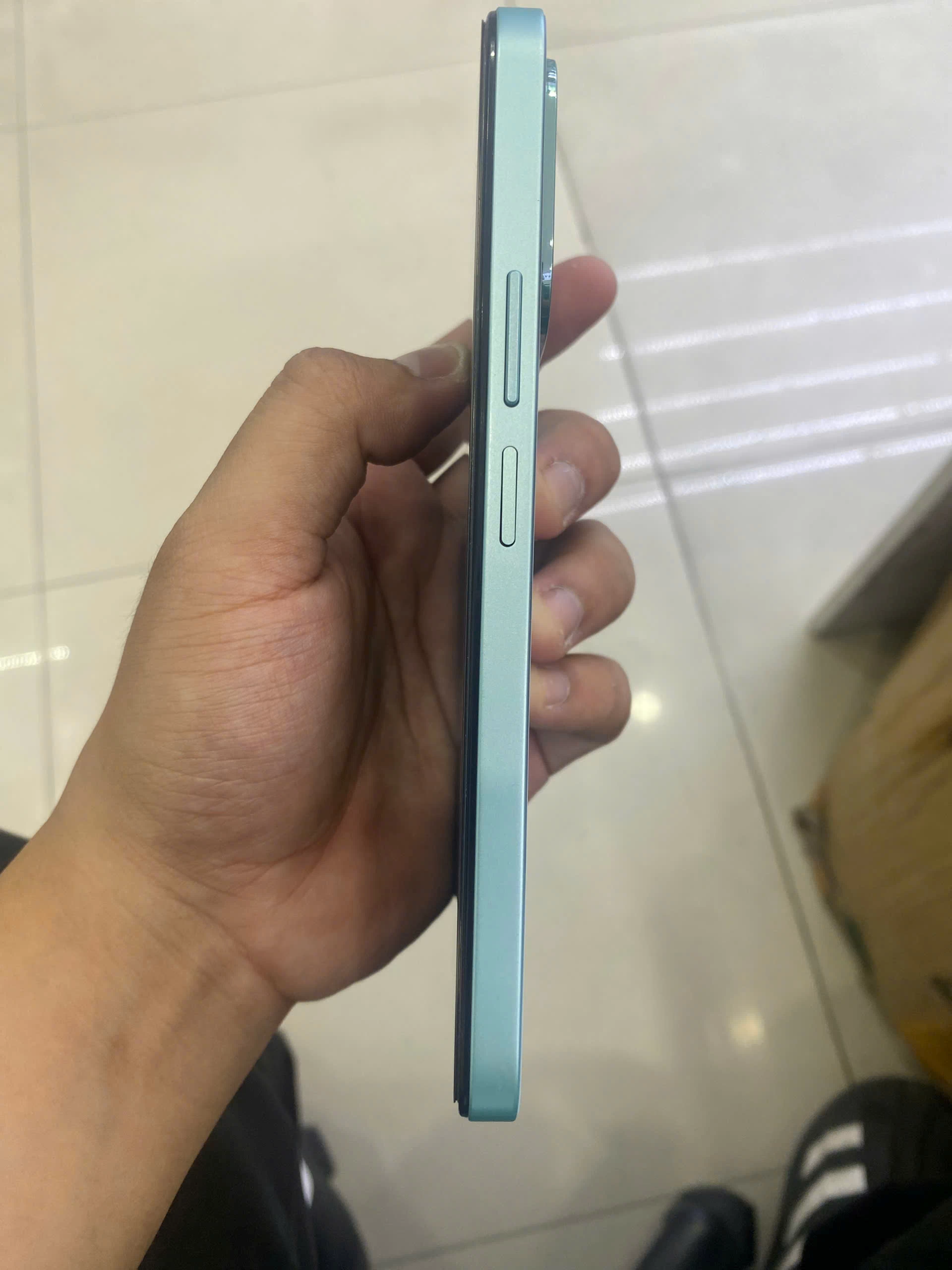 Máy có kích thước tổng thể là 163.95 x 75.6 x 8.39 mm, vừa tay và dễ dàng bỏ túi áo, túi quần. Sự cân đối giữa màn hình lớn và thân máy mỏng gọn tạo cảm giác hài hòa, không cồng kềnh dù sở hữu pin dung lượng cao. Thiết kế này phù hợp với nhiều đối tượng người dùng, đặc biệt là giới trẻ yêu thích sự tối giản nhưng vẫn nổi bật.