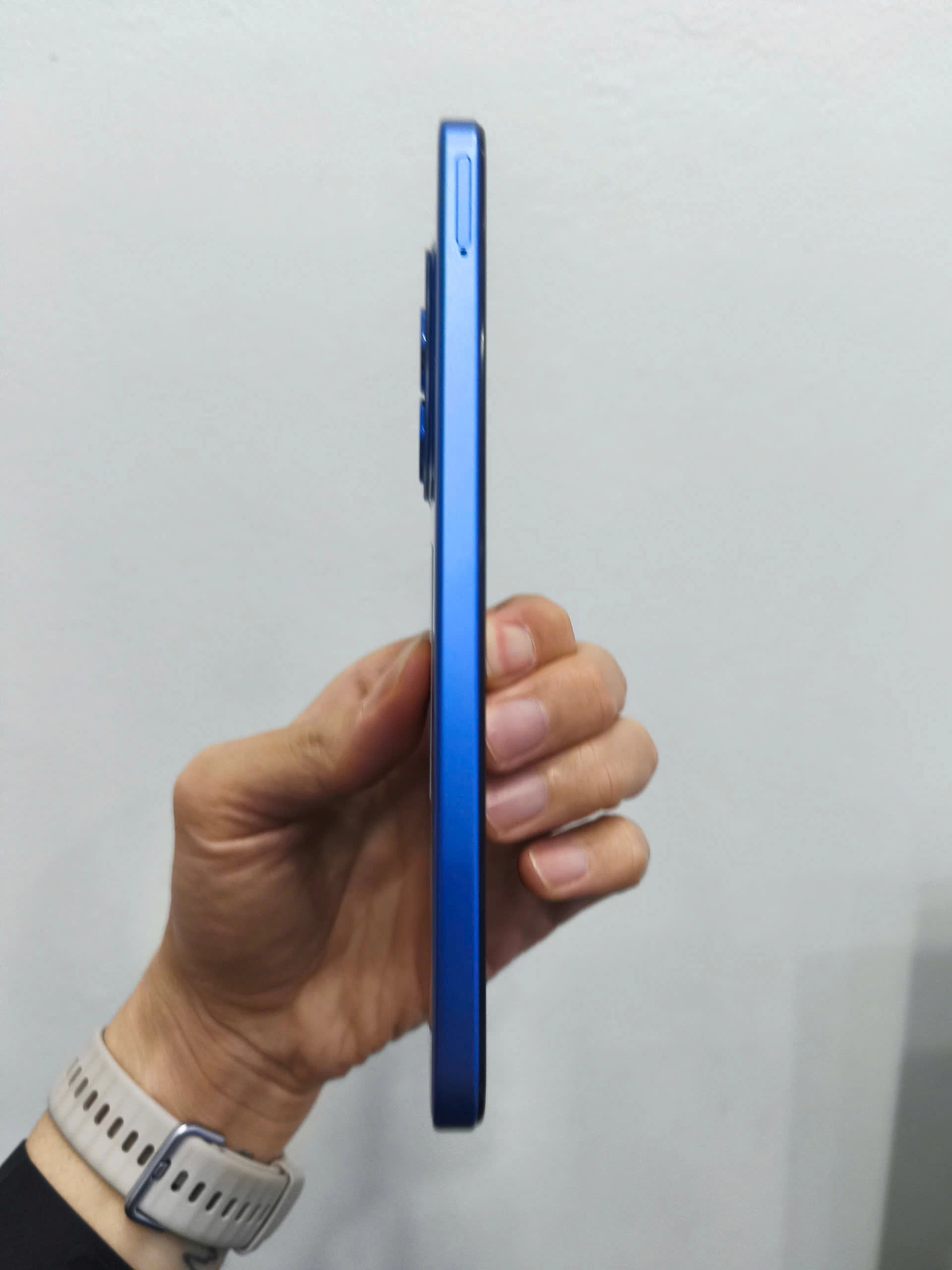 Viền màn hình được tinh gọn, giúp tối ưu không gian hiển thị, trong khi cảm biến vân tay được đặt cạnh bên mang lại sự thuận tiện khi thao tác mở khóa. Các tùy chọn màu sắc như Đen Bán Dạ, Cam Hoàng Hôn, Xanh Lam Nguyệt,... góp phần tạo nên cá tính cho người dùng hiện đại.