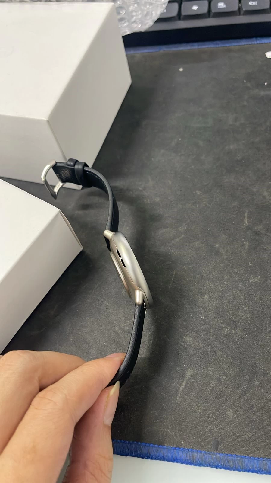 Dây đeo da tông đen cao cấp, mềm mại và ôm sát cổ tay, không chỉ tăng tính thẩm mỹ mà còn mang lại cảm giác thoải mái suốt cả ngày dài. Dây đeo này cũng dễ dàng tháo lắp, cho phép người dùng thay đổi linh hoạt theo phong cách cá nhân hoặc từng tình huống sử dụng, từ làm việc, đi chơi cho đến luyện tập thể thao.