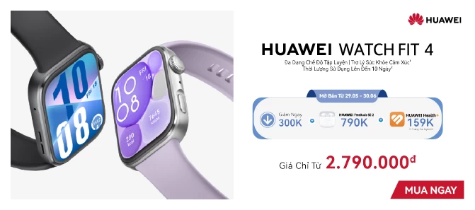 Huawei Watch Fit 4 Pro là mẫu đồng hồ thông minh thế hệ mới của Huawei, nổi bật với thiết kế thời trang, hiệu năng ổn định và loạt tính năng hỗ trợ sức khỏe, thể thao toàn diện.