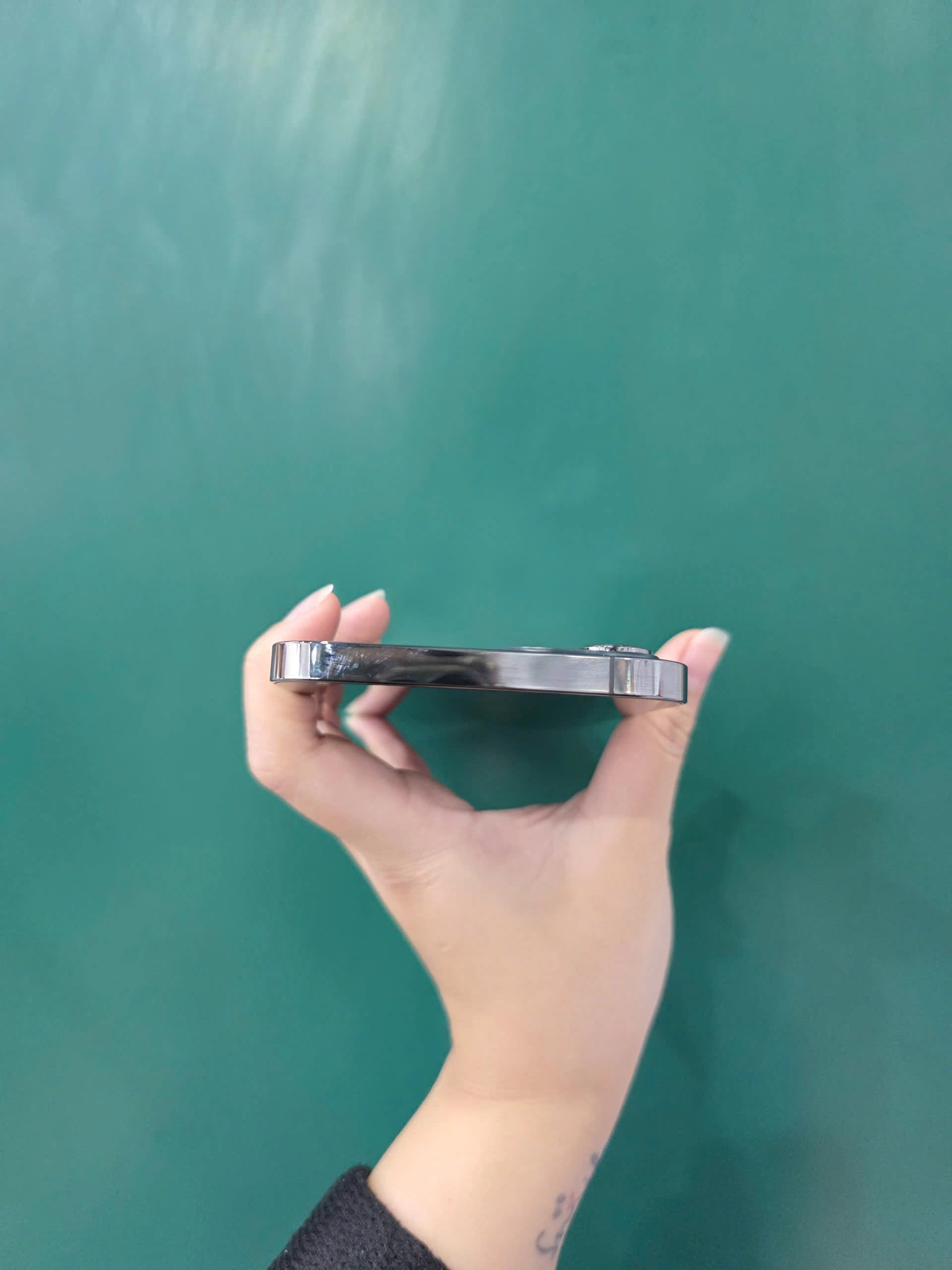 Cầm iPhone 12 Pro Max trên tay chắc chắn sẽ thu hút mọi ánh nhìn nhờ thiết kế cực sang trọng. Phần viền của máy được làm từ vật liệu thép không gỉ sáng bóng, được sơn lên lớp phủ chống xước. Mặt lưng của máy tiếp tục được hoàn thiện nhám giúp tăng cường khả năng cầm nắm mà không phải đánh đổi vẻ ngoài cao cấp. Người dùng sẽ có 4 lựa chọn về màu sắc gồm bạc, xám graphite, vàng và xanh biển sâu. iPhone 12 Pro Max được trang bị chuẩn kháng nước và bụi bẩn IP68.