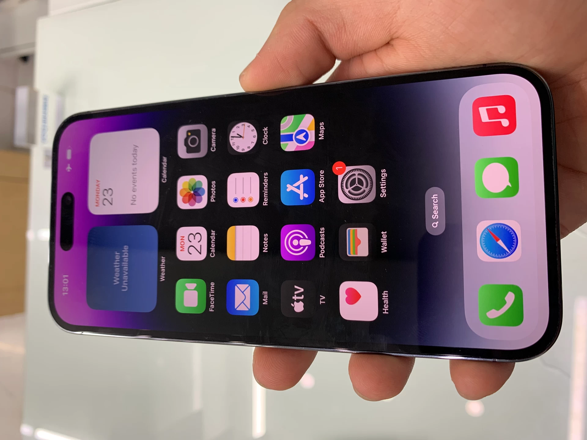 Chiếc iPhone 14 Pro Max VN/A sở hữu màn hình Super Retina XDR mới với ProMotion có kích thước 6.7 inch. Tần số quét màn hình sẽ giảm xuống 1 Hz để tiết kiệm pin, trong khi hình nền được làm mờ. Màn hình tiên tiến cũng mang lại mức độ sáng HDR cao nhất tương tự như Pro Display XDR và độ sáng đỉnh ngoài trời cao nhất trong điện thoại thông minh: lên đến 2000 nits, sáng gấp đôi so với người tiền nhiệm.