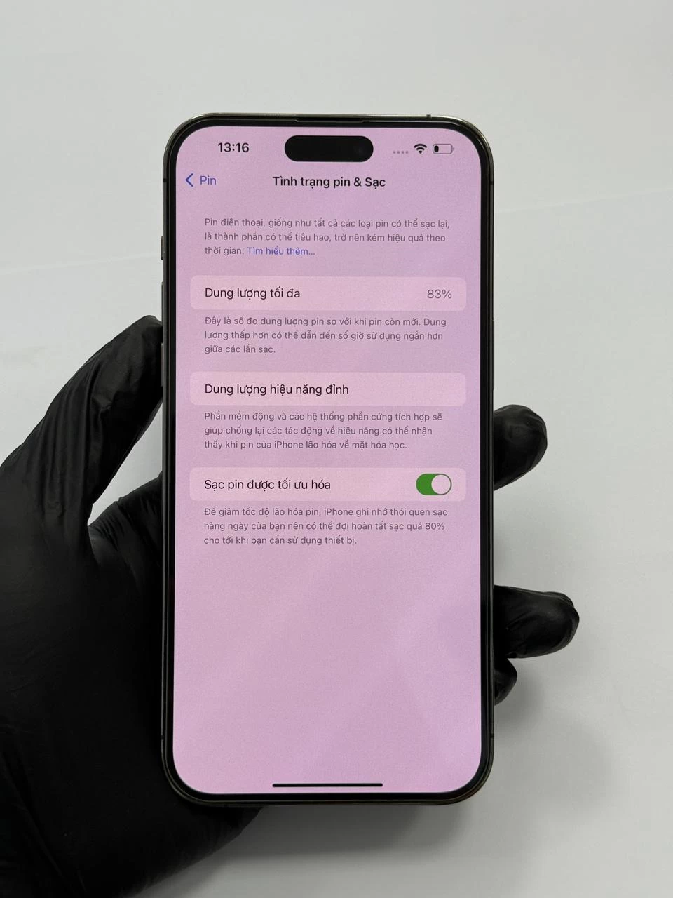 iPhone 14 Pro Max VN/A có dung lượng 4.323 mAh – thấp hơn một chút so với mức 4.352 mAh của 13 Pro Max. Ngoài ra, thiết bị được trang bị sạc nhanh với công suất 30W, cao hơn đáng kể so với mức sạc 20W cũ.