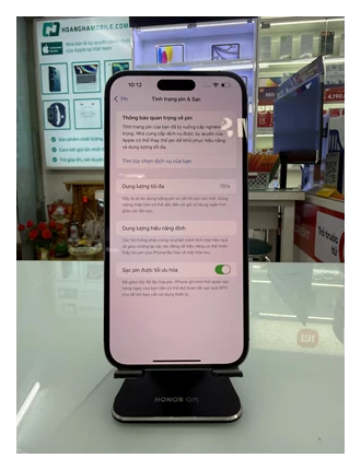 iPhone 14 Pro Max VN/A có dung lượng 4.323 mAh – thấp hơn một chút so với mức 4.352 mAh của 13 Pro Max. Ngoài ra, thiết bị được trang bị sạc nhanh với công suất 30W, cao hơn đáng kể so với mức sạc 20W cũ.