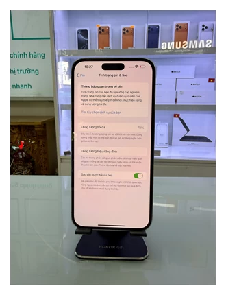 iPhone 14 Pro Max VN/A có dung lượng 4.323 mAh – thấp hơn một chút so với mức 4.352 mAh của 13 Pro Max. Ngoài ra, thiết bị được trang bị sạc nhanh với công suất 30W, cao hơn đáng kể so với mức sạc 20W cũ.