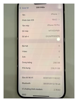 ĐTDĐ Apple iPhone 15 Pro 256G Natural Titanium_MTUX3VN/A - SGQJ6PPWWPN - MTUX3VN - Cũ