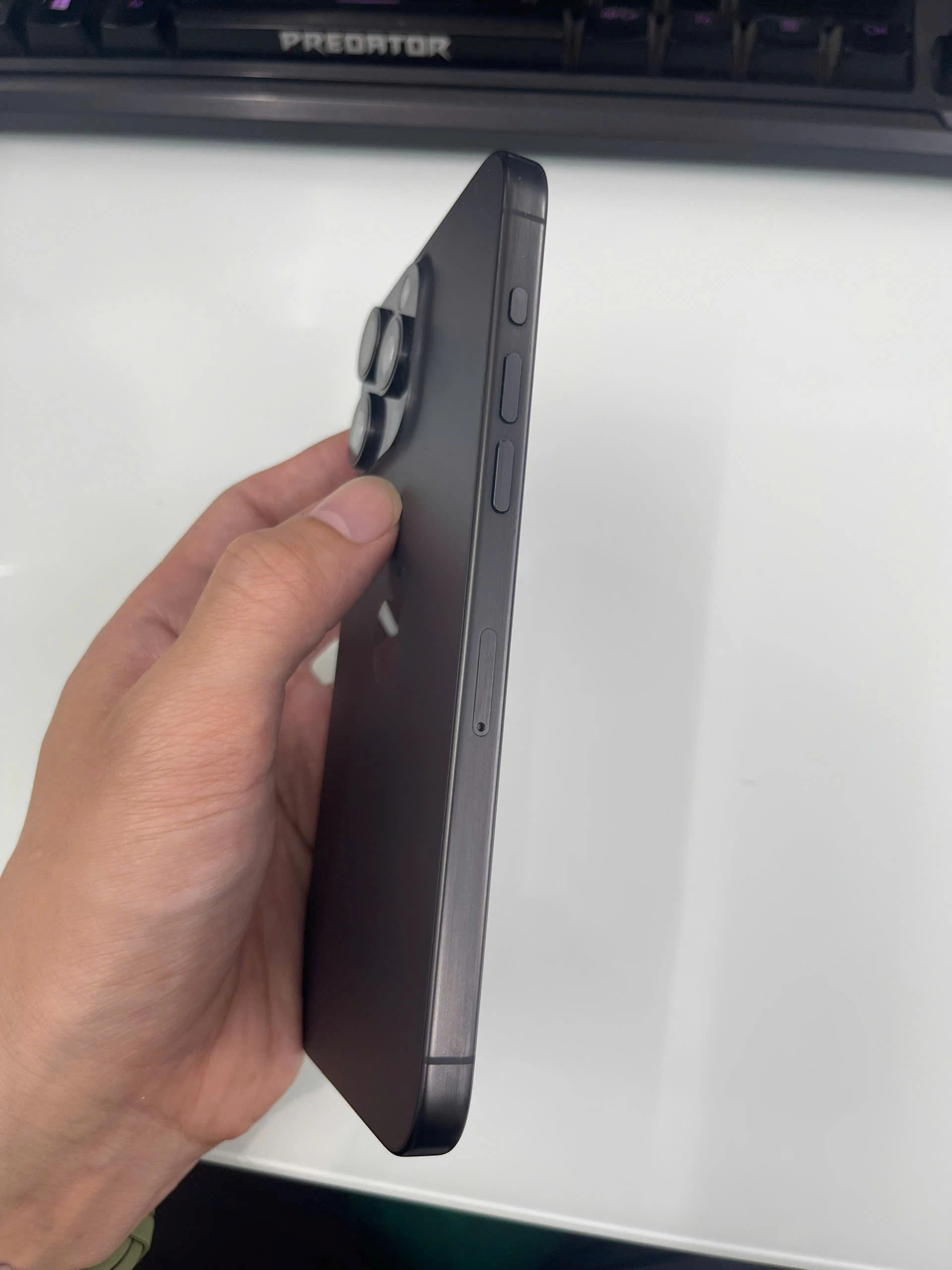 Đối với iPhone 15 Pro Max, Apple đã quyết định loại bỏ lớp khung thép không gỉ truyền thống và chuyển sang sử dụng titan giúp thiết bị nhẹ hơn khoảng 10% so với các phiên bản trước đó. Ngoài đem đến trải nghiệm cầm nắm thuận tiện hơn, chất liệu titan có tính chất chống ăn mòn và chịu được va đập tốt sẽ mang lại độ bền cao hơn cho iPhone 15 Pro Max.