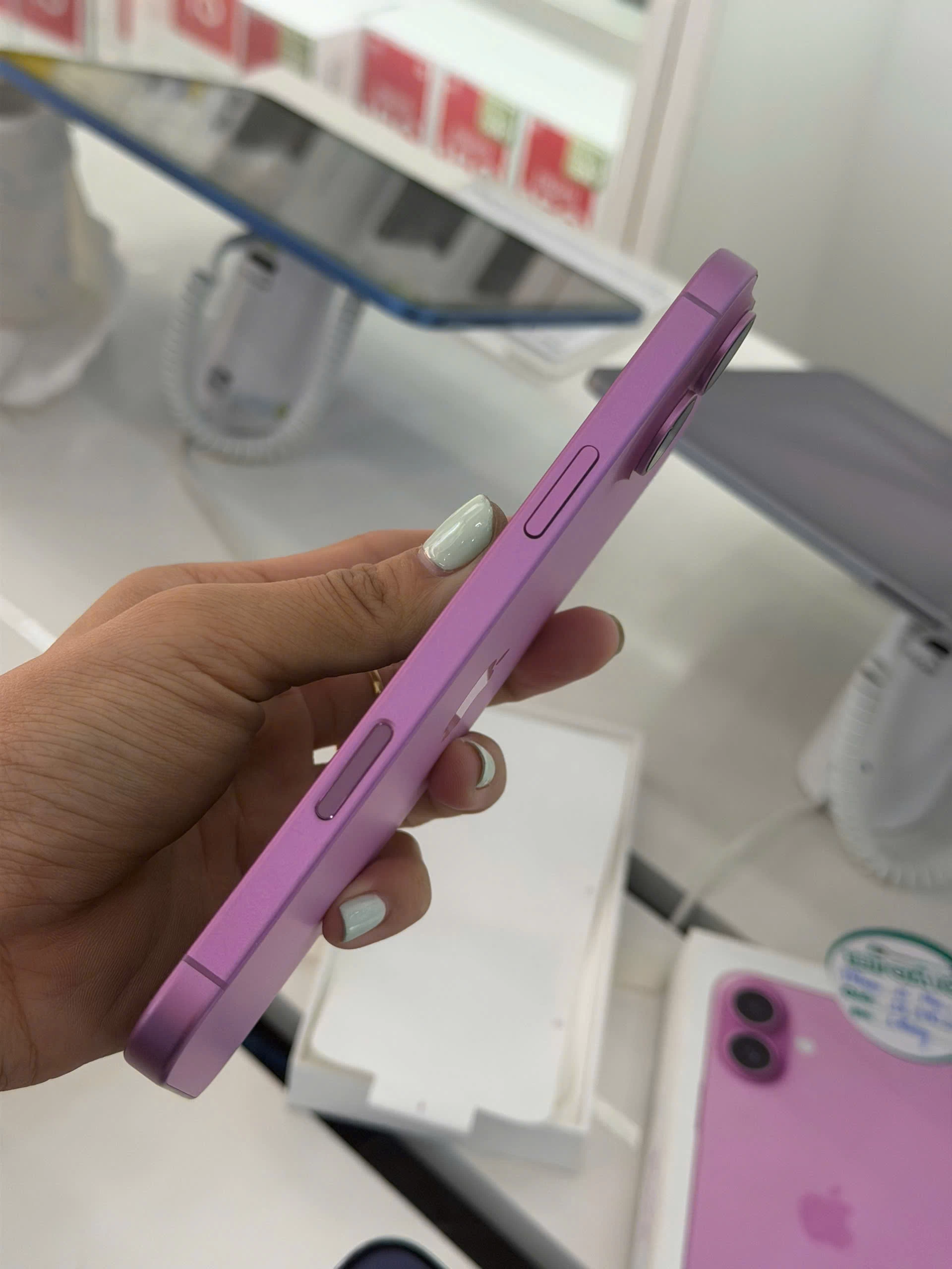 Về mặt màu sắc, chúng ta có được những sắc thái sống động và đậm đà hơn trên phiên bản 16. Apple công bố tổng cộng 5 màu sắc cho mẫu điện thoại mới gồm Đen, Trắng, Hồng, Xanh ngọc, Xanh lam đậm.