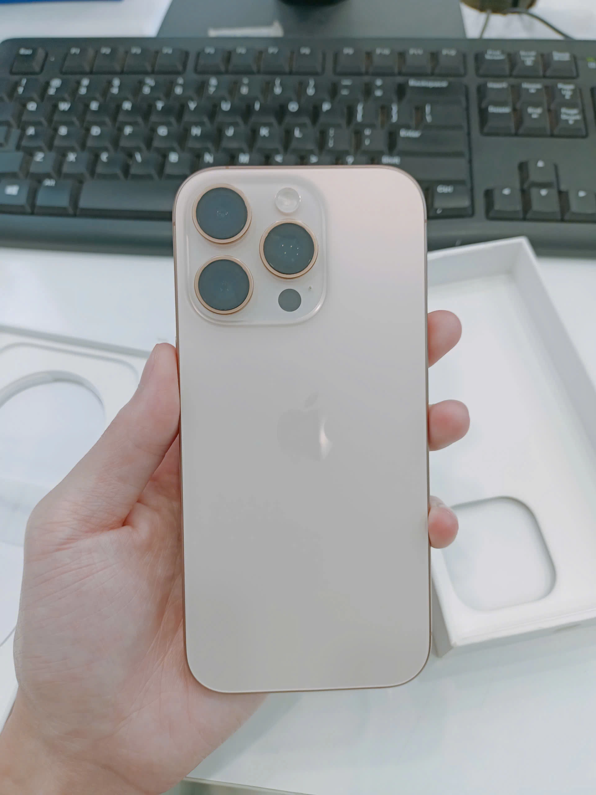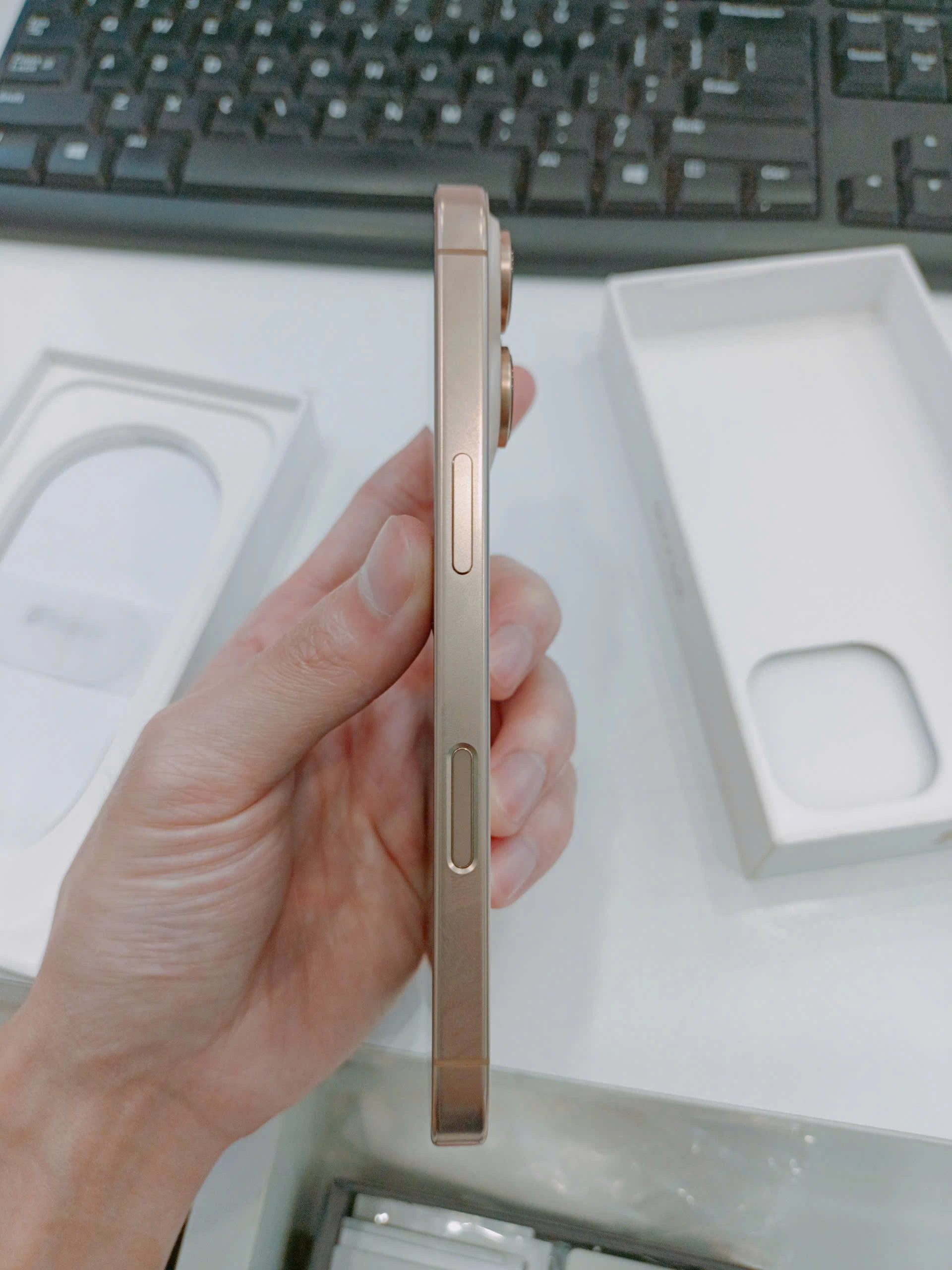 Về màu sắc, bạn có các tùy chọn Black Titanium, White Titanium và Natural Titanium giống như iPhone 15 Pro năm ngoái. Ngoại trừ tùy chọn Blue Titanium, giờ đây có thêm màu Desert Titanium. Đây là màu đồng trông rất sang trọng mà Apple sử dụng làm màu chủ đạo của năm nay.