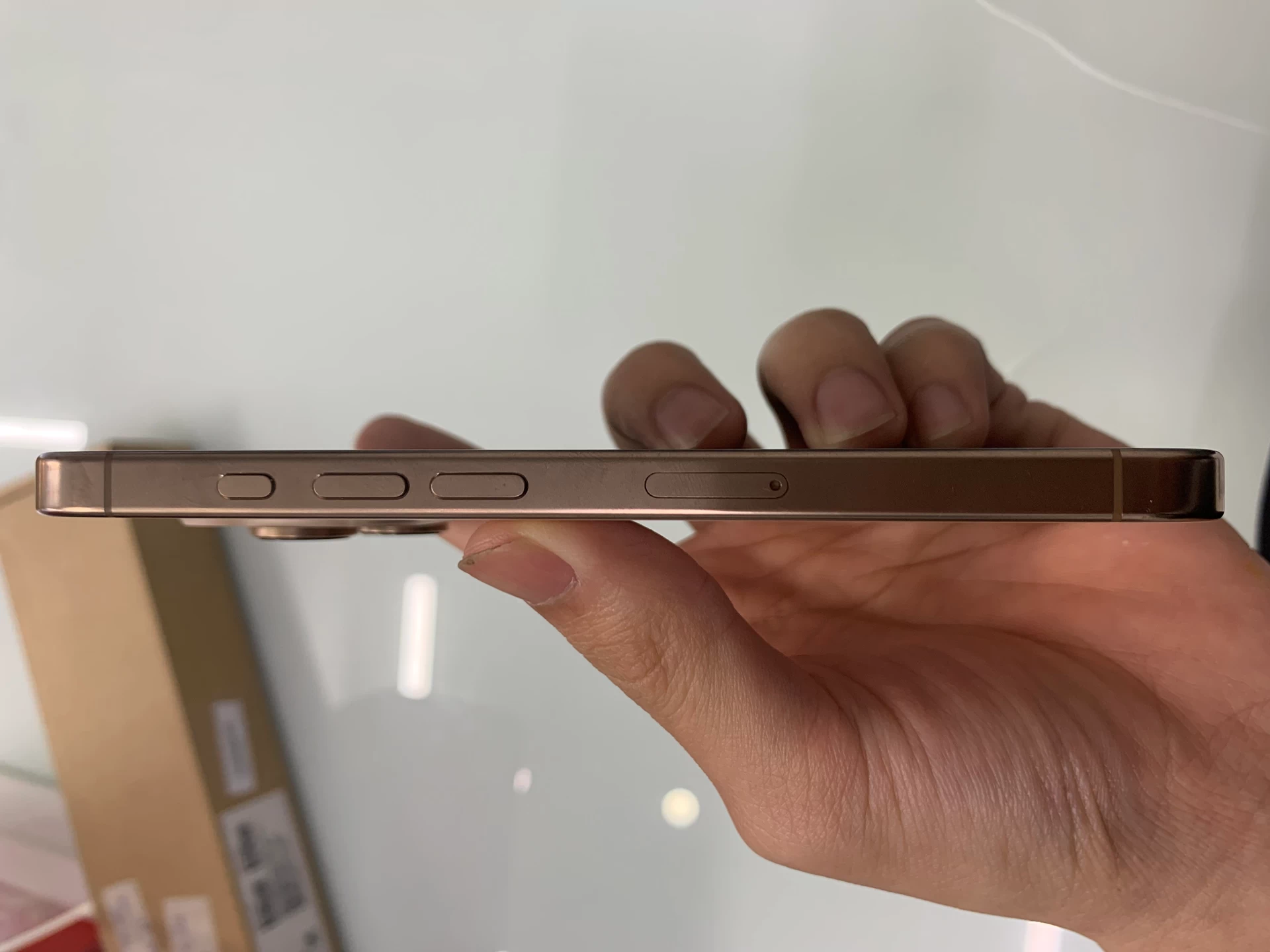Về màu sắc, bạn có các tùy chọn Black Titanium, White Titanium và Natural Titanium giống như iPhone 15 Pro năm ngoái. Ngoại trừ tùy chọn Blue Titanium, giờ đây có thêm màu Desert Titanium. Đây là màu đồng trông rất sang trọng mà Apple sử dụng làm màu chủ đạo của năm nay.