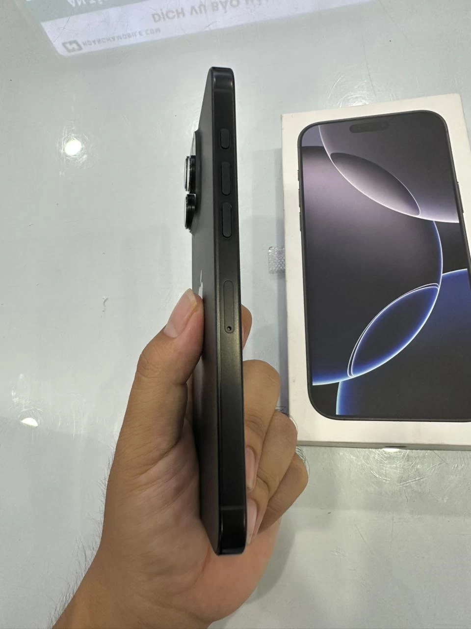 Như đã đề cập trước đó, iPhone 16 Pro Max được trang bị màn hình kích thước 6.9 inch với viền mỏng hơn xung quanh. Đây là một màn hình OLED với độ sáng tối đa được đánh giá là đến 2000 nits, tốc độ làm mới 120Hz.