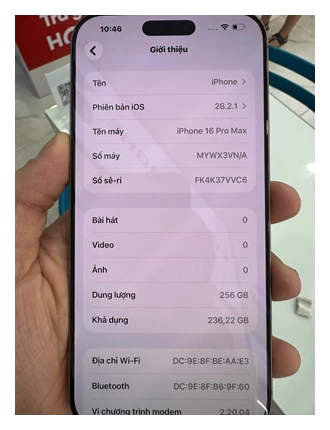 ĐTDĐ Apple iPhone 16 Pro Max 256GB Desert Titanium_MYWX3VN/A - 358029690153074 - MYWX3VN