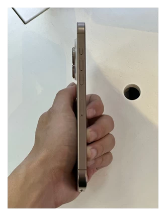 Một điểm mới ấn tượng của iPhone 16 Pro là Camera Control, được đặt bên dưới phím nguồn, hơi ấn vào vỏ máy, với phản hồi xúc giác bổ sung từ Taptic Engine của Apple. Đây là nút điện dung, vì vậy nút này sẽ không vô tình bị kích hoạt trong túi của bạn. Bạn có thể sử dụng nút này như một nút chụp và nhấp để chụp ảnh từ camera chính 48MP mà không có độ trễ màn trập.