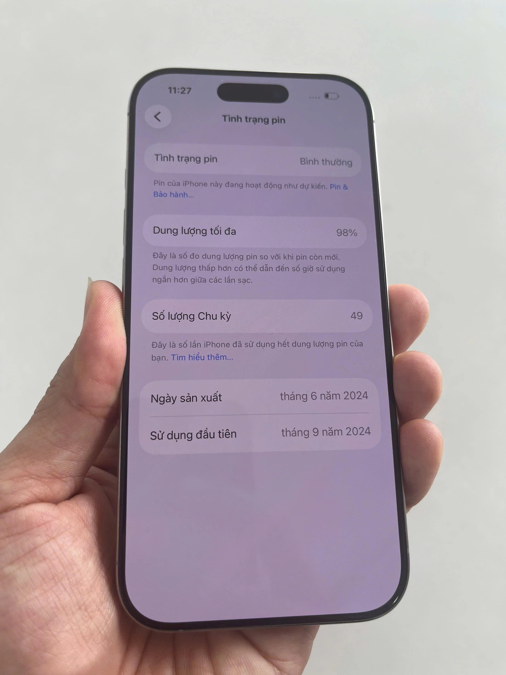 Nhờ cải tiến về pin và hiệu suất mới được cung cấp bởi chip A18 Pro và phần mềm iOS 18 Apple tuyên bố thời lượng pin của máy đã được cải thiện so với iPhone 15 Pro.