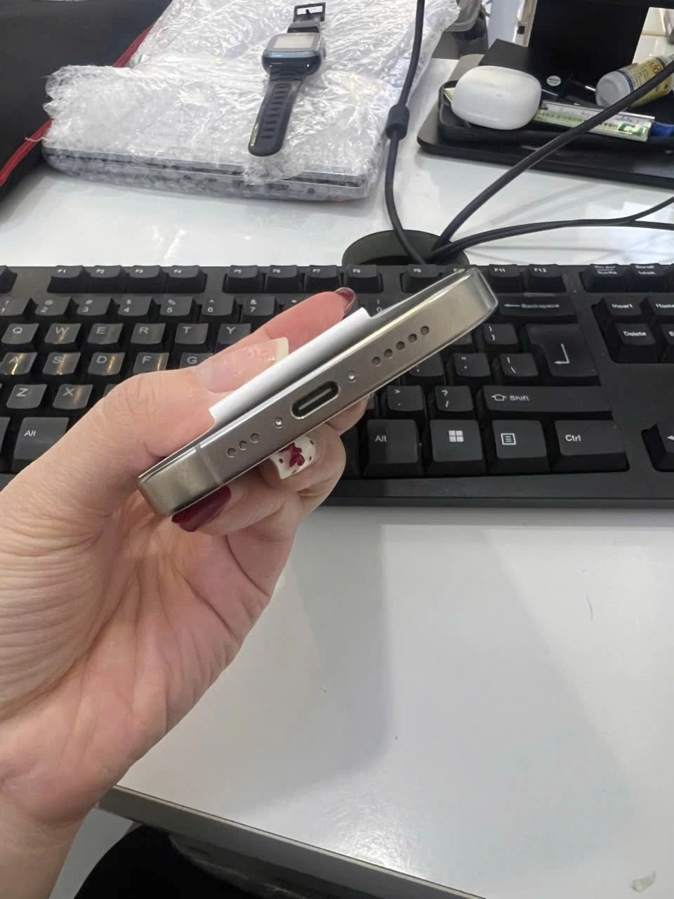 Về mặt vật liệu, chúng ta có cùng khung Titan cấp 5 như năm ngoái với Ceramic Shield cải tiến ở mặt trước. Thiết bị vẫn có xếp hạng chống nước và bụi IP68, cũng như cổng USB-C để sạc (với tốc độ USB 3).