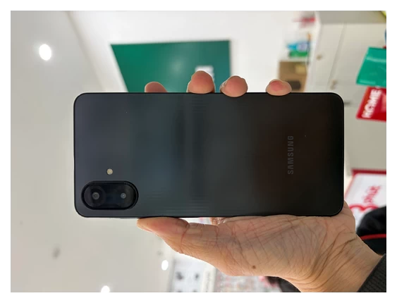 Samsung Galaxy A07 sở hữu thiết kế quen thuộc nhưng vẫn tạo được nét riêng nhờ cụm camera kép đặt dọc hình viên thuốc và logo Samsung in ở phần dưới mặt lưng. Phần vỏ được hoàn thiện từ nhựa polycarbonate với bề mặt nhám, hạn chế bám vân tay và cho cảm giác cầm nắm chắc tay. Các cạnh máy bo cong nhẹ tạo sự thoải mái khi sử dụng lâu dài.