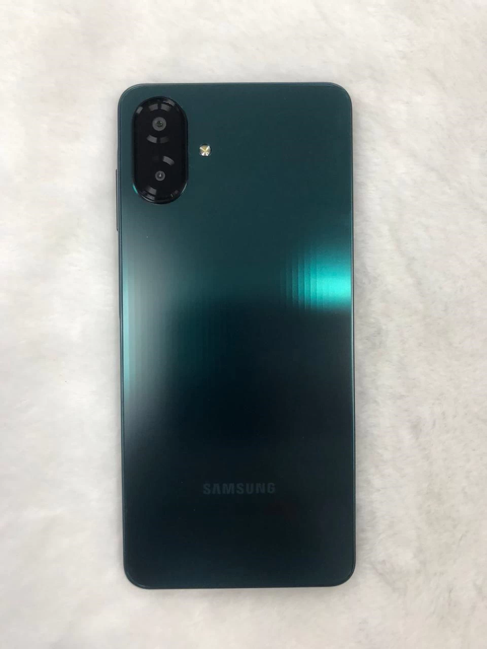 Samsung Galaxy A07 sở hữu thiết kế quen thuộc nhưng vẫn tạo được nét riêng nhờ cụm camera kép đặt dọc hình viên thuốc và logo Samsung in ở phần dưới mặt lưng. Phần vỏ được hoàn thiện từ nhựa polycarbonate với bề mặt nhám, hạn chế bám vân tay và cho cảm giác cầm nắm chắc tay. Các cạnh máy bo cong nhẹ tạo sự thoải mái khi sử dụng lâu dài.